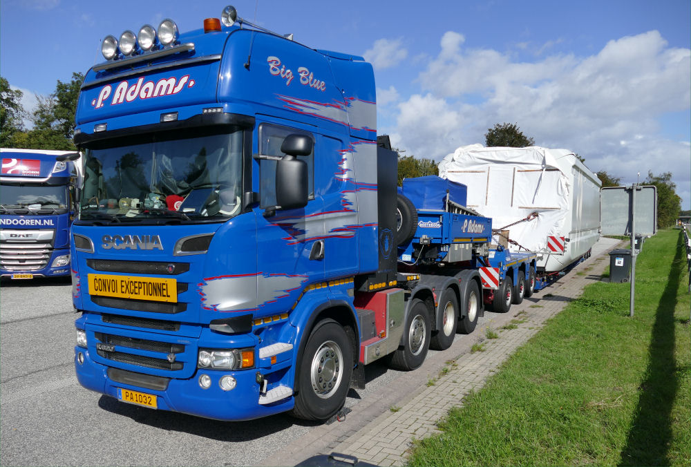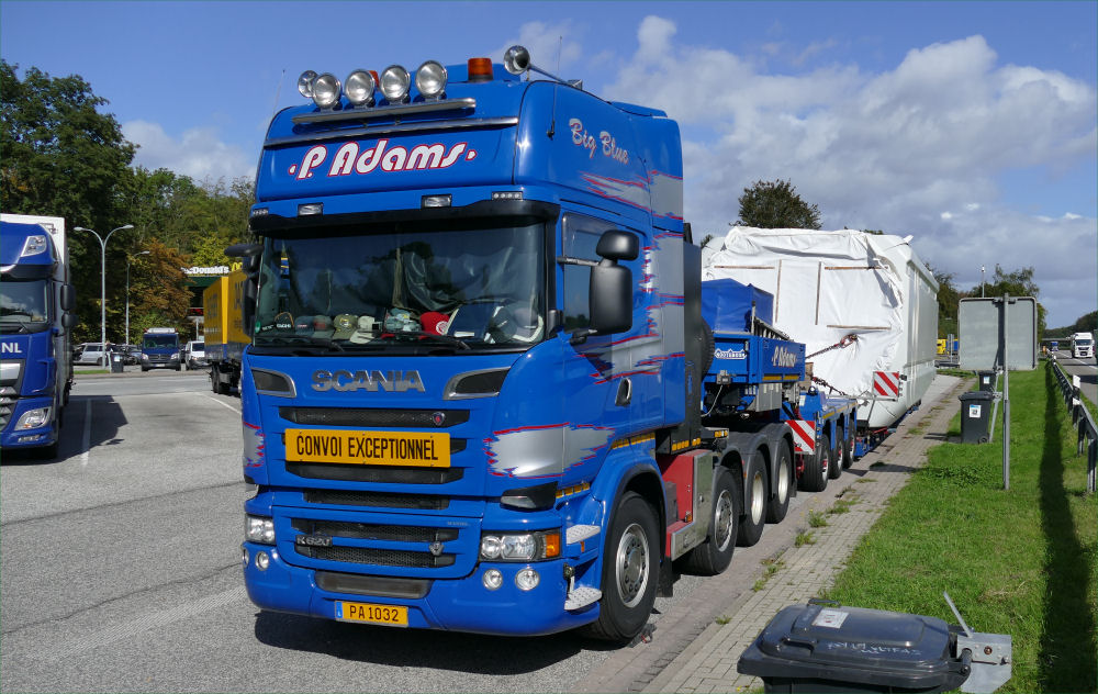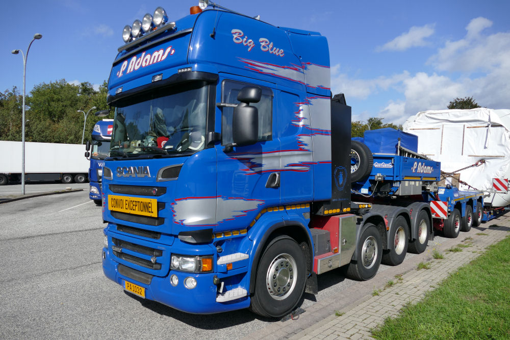 Die Schwerlastkombination bestand aus einer Scania R 620 8x4 mit dem Namen "Big Blue" und einem Nooteboom Euro ICP