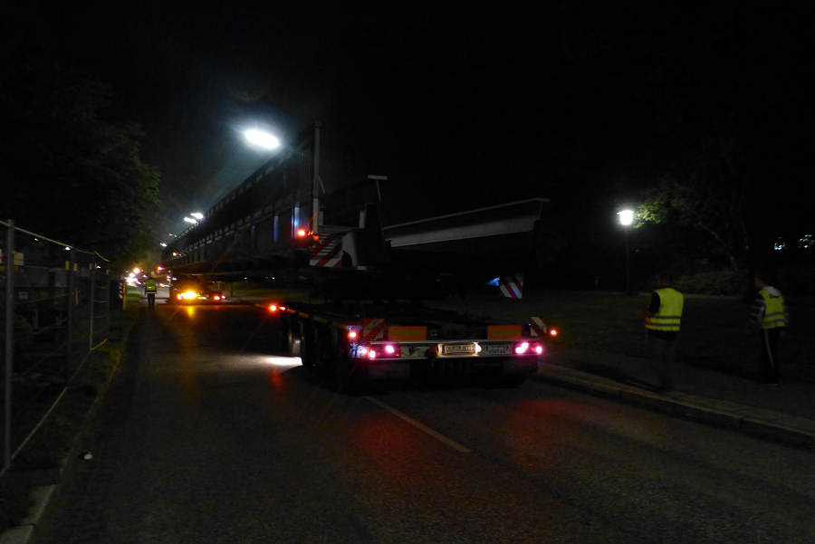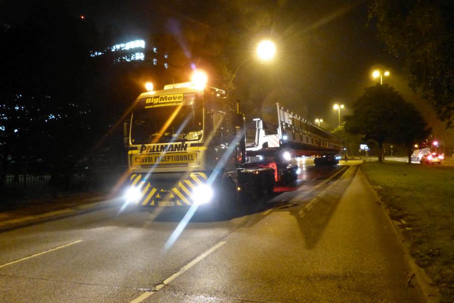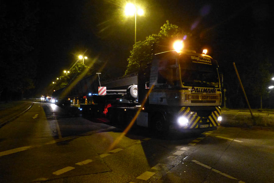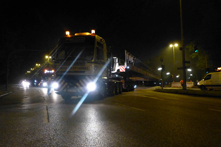 Die Transporte kamen spät abends in Hamburg und an der Baustelle an und wurden am nächsten Morgen