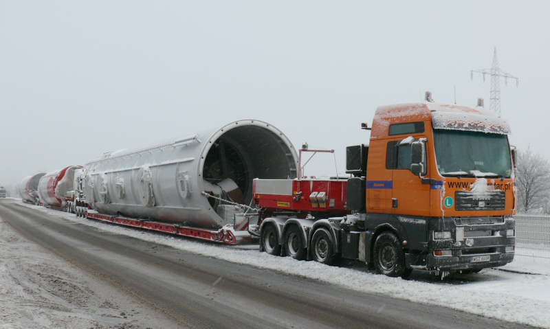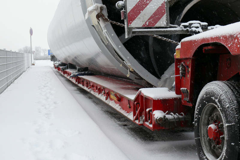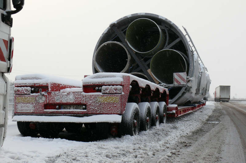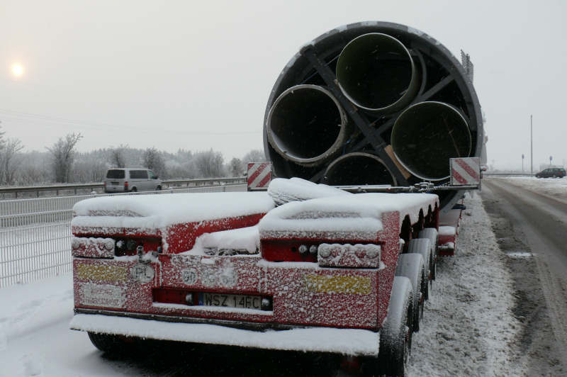 Aufgrund eines Wintereinbruches mit heftigem Schneefall sahen die Transporte entsprechend aus...