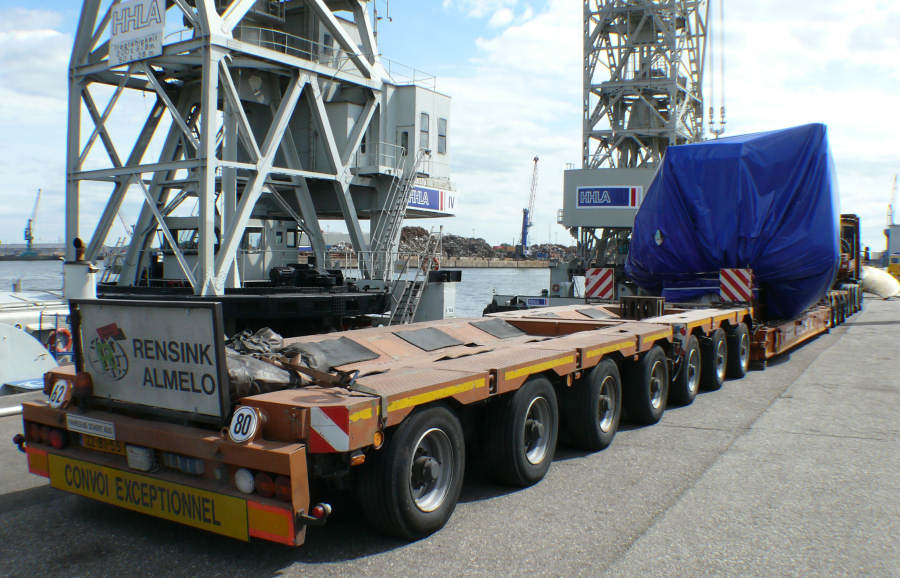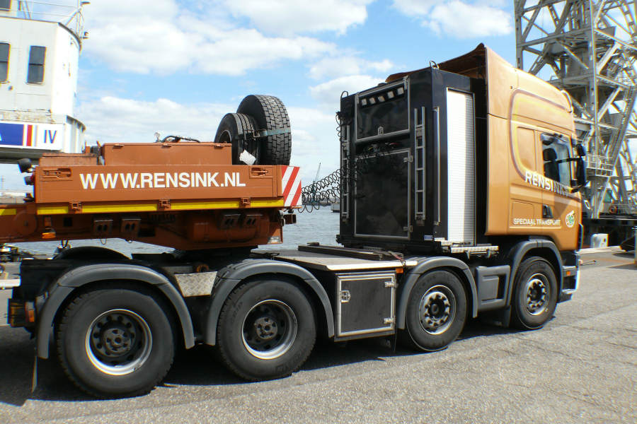 Scania 164 G 580 im Scheuerle/Greiner Kombination und Maschinengetriebe für den Export