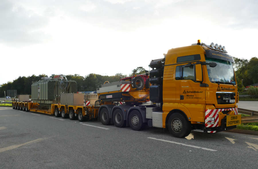 MAN 41.680 TGX XXL Nl. München mit 62,5 t Trafotransport