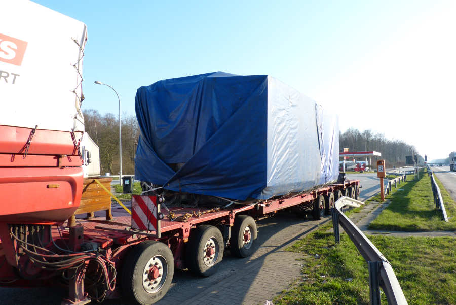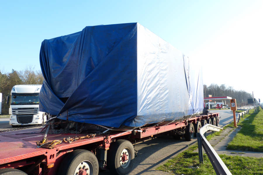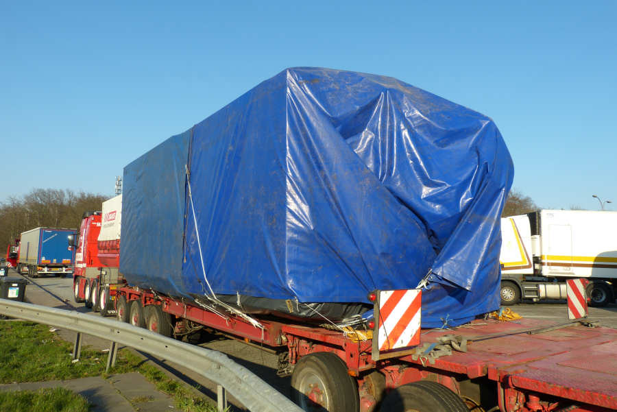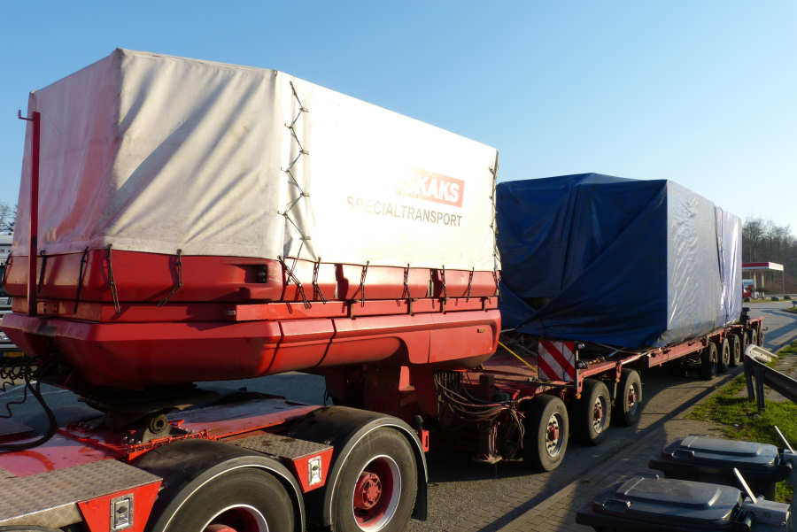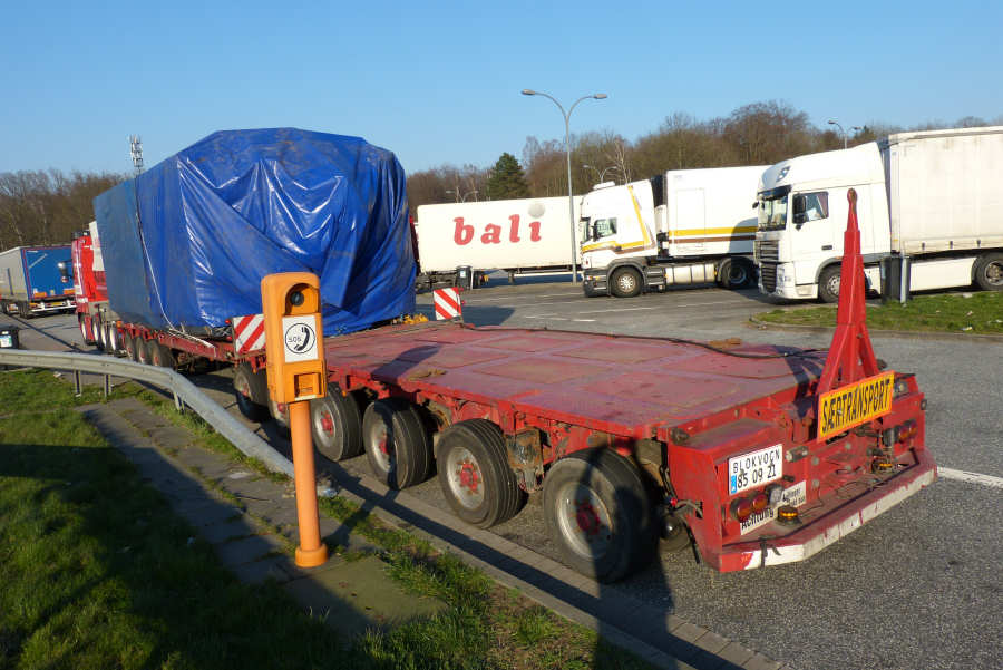 Volvo FH 16 600 mit Nicolas 3/6 Tieflader und Spritzgießmaschine