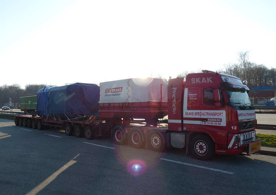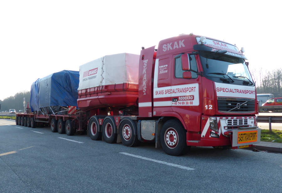 Volvo FH 16 600 mit Nicolas 3/6 Tieflader und Spritzgießmaschine