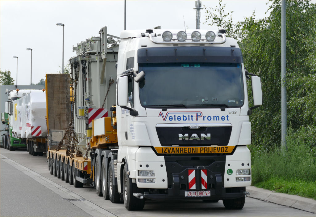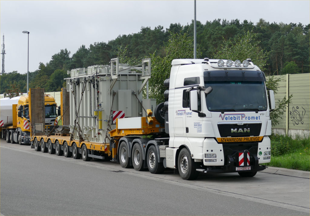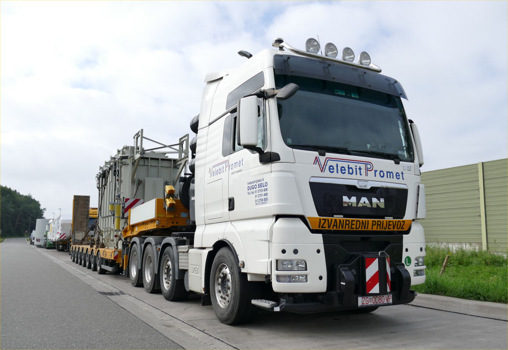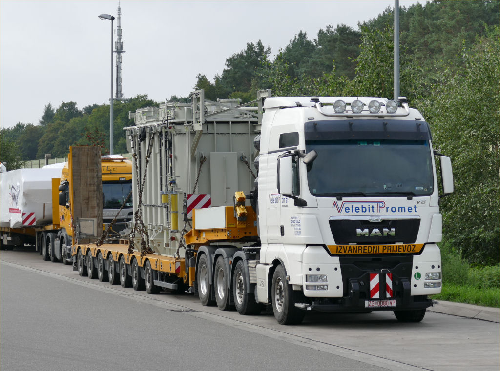 MAN 41.680 TGX mit Faymonville Multimax siebenachs Semitieflader und Trafo