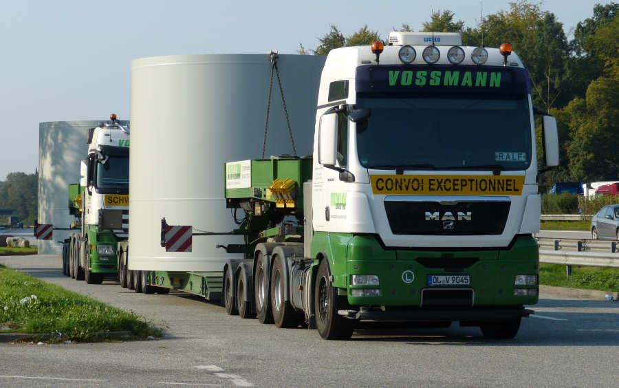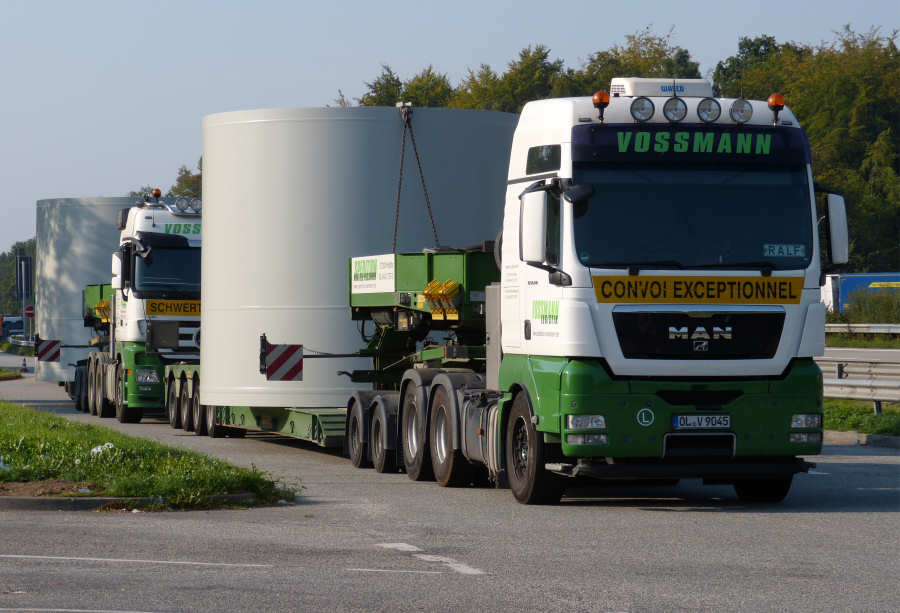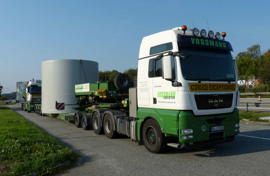 MAN 26.540 TGX und MB 2855 MP 3 mit WEA Betonteilen