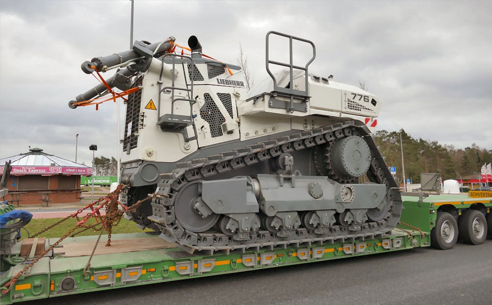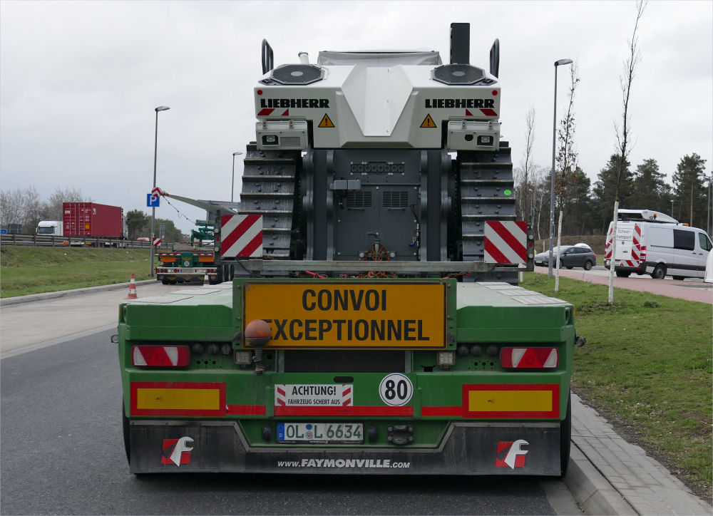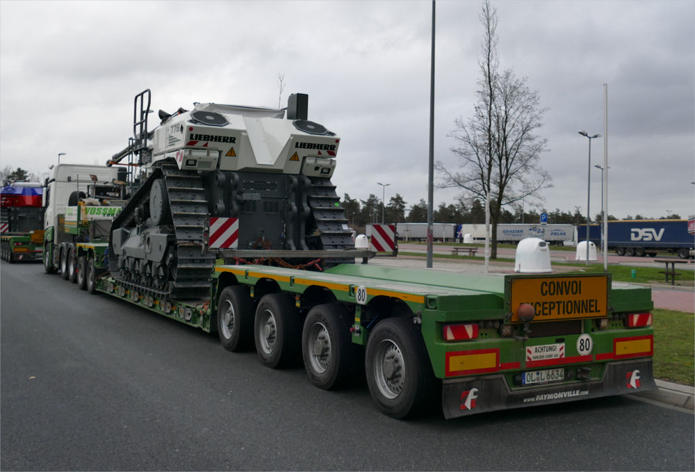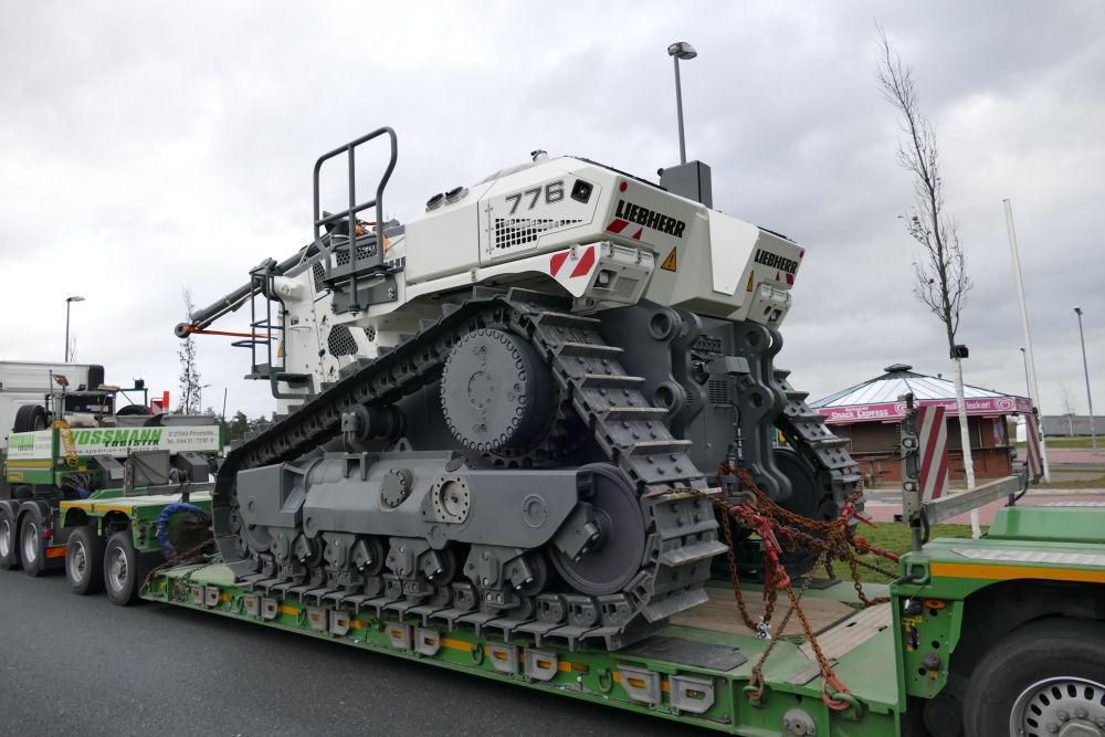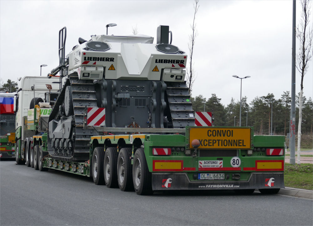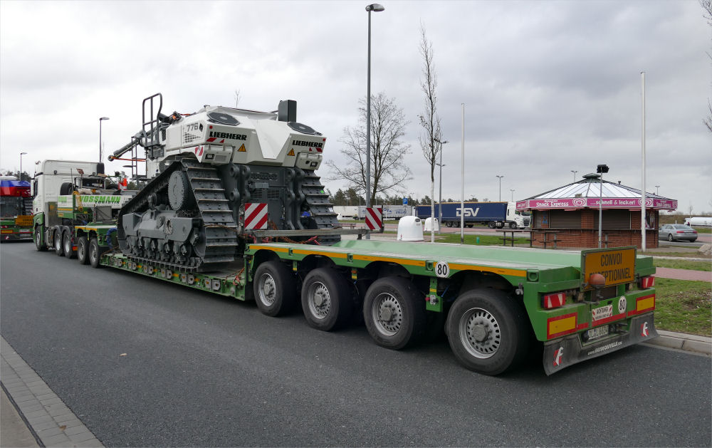 MB 2858 Actros MP 4 mit Faymonville Variomax 2/4 Tieflader und Liebherr PR 776