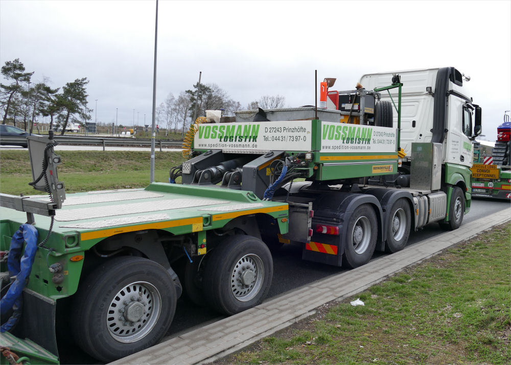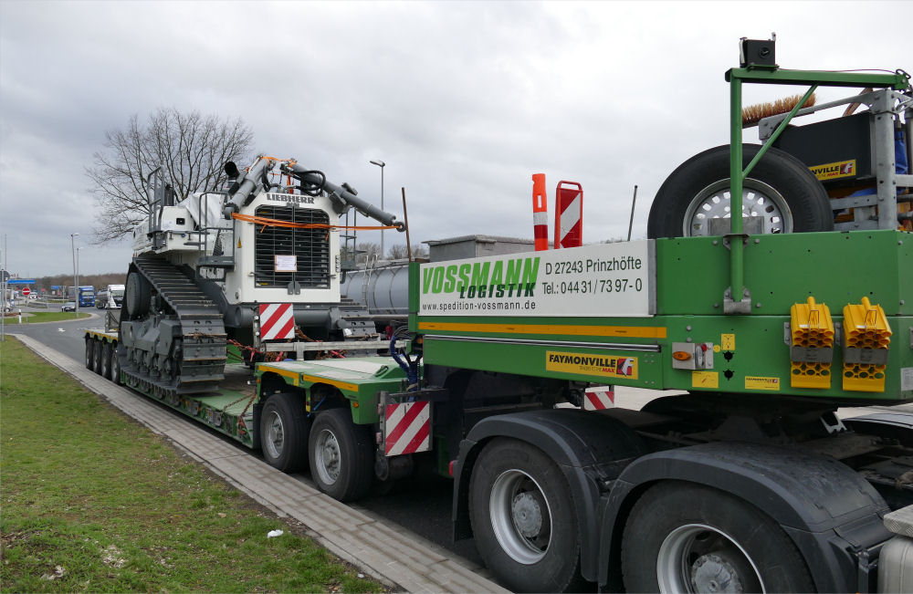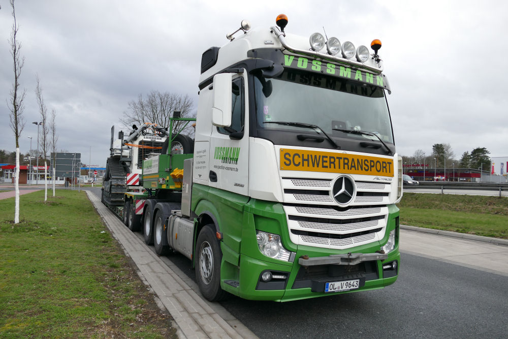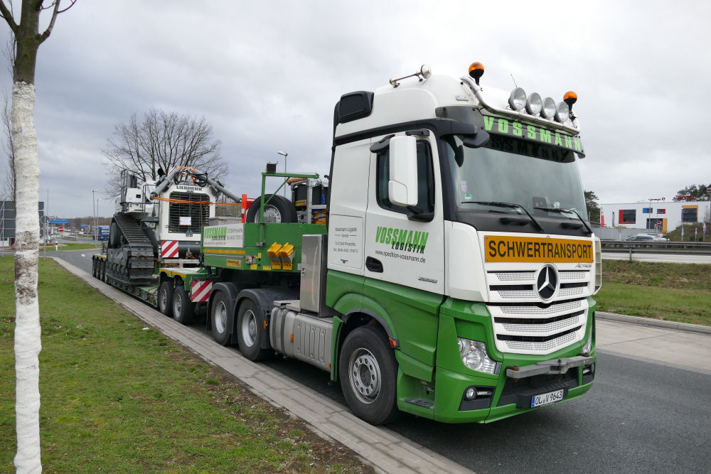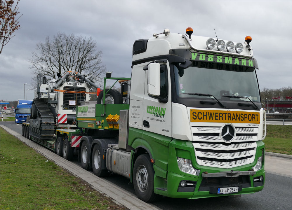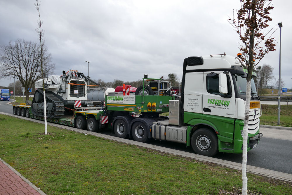 MB 2858 Actros MP 4 mit Faymonville Variomax 2/4 Tieflader und Liebherr PR 776