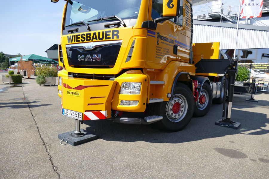 Neben den Abstützungen am Ladekran und Heck, verfügt die Maschine auch über Frontabstützung, für