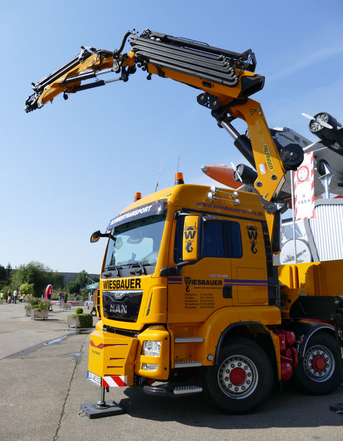 Es handelt sich um eine MAN 35.480 TGS mit Palfinger PK 92002 SH Ladekran.