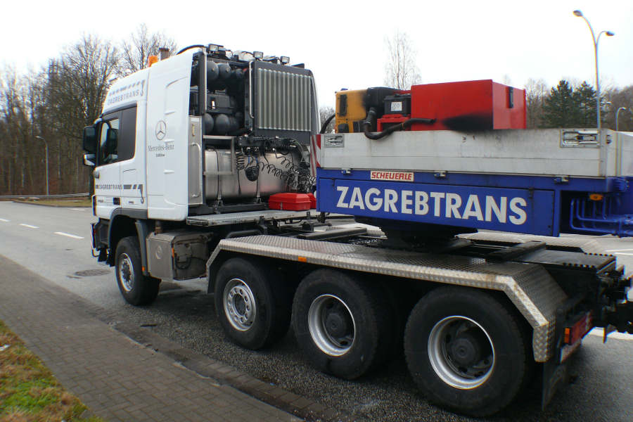 Die Schwerlastkombination bestand aus einer MB 4160 MP 3 8x6 Titan Zugmaschine und Scheuerle Intercombi