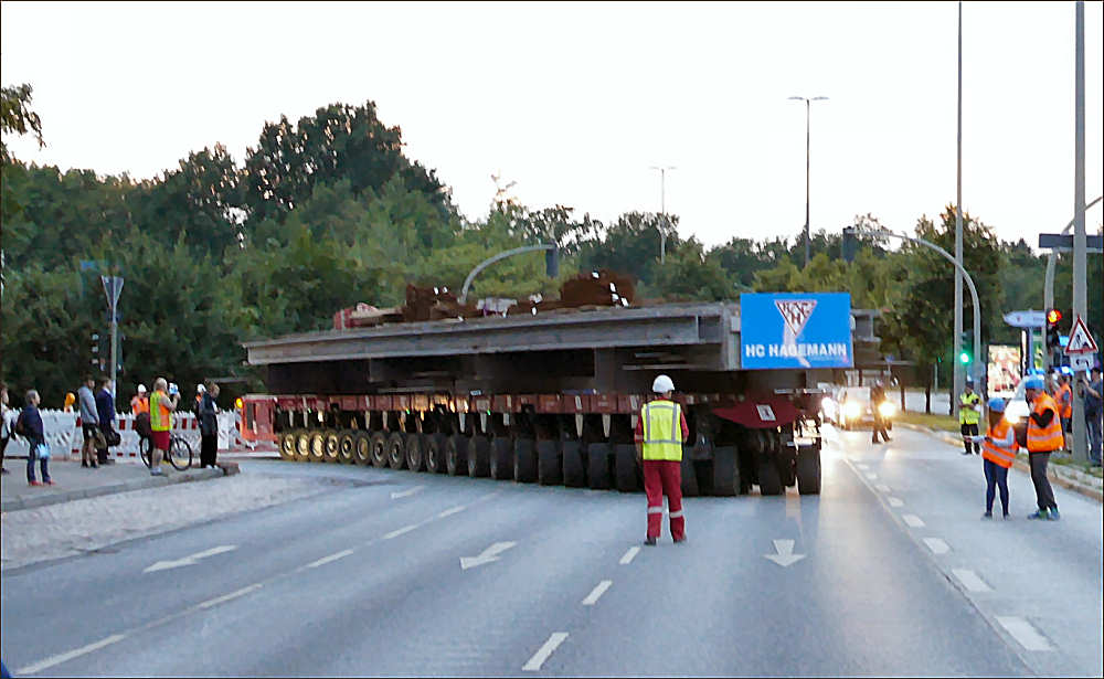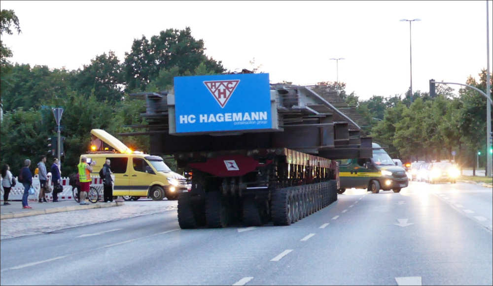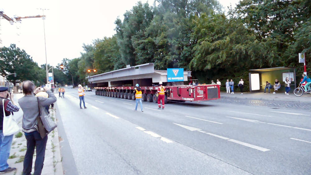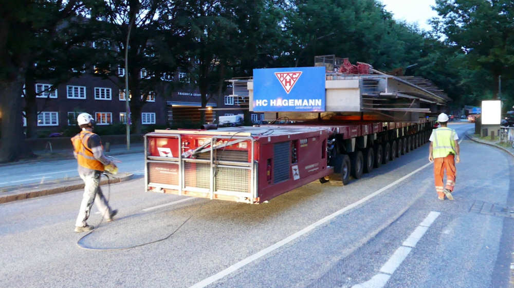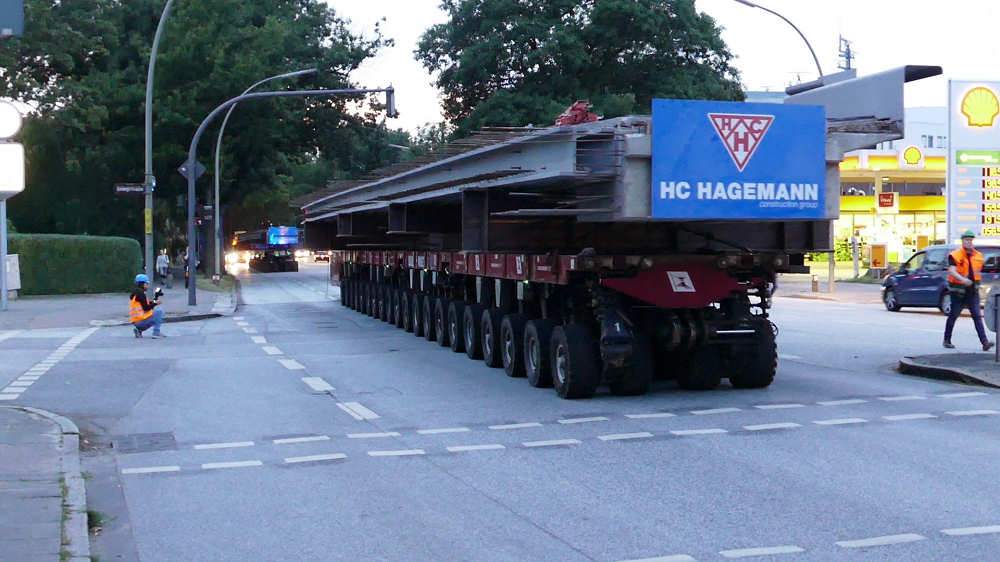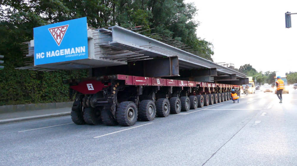 Transport von Betonbrückenteilen mit SPMT