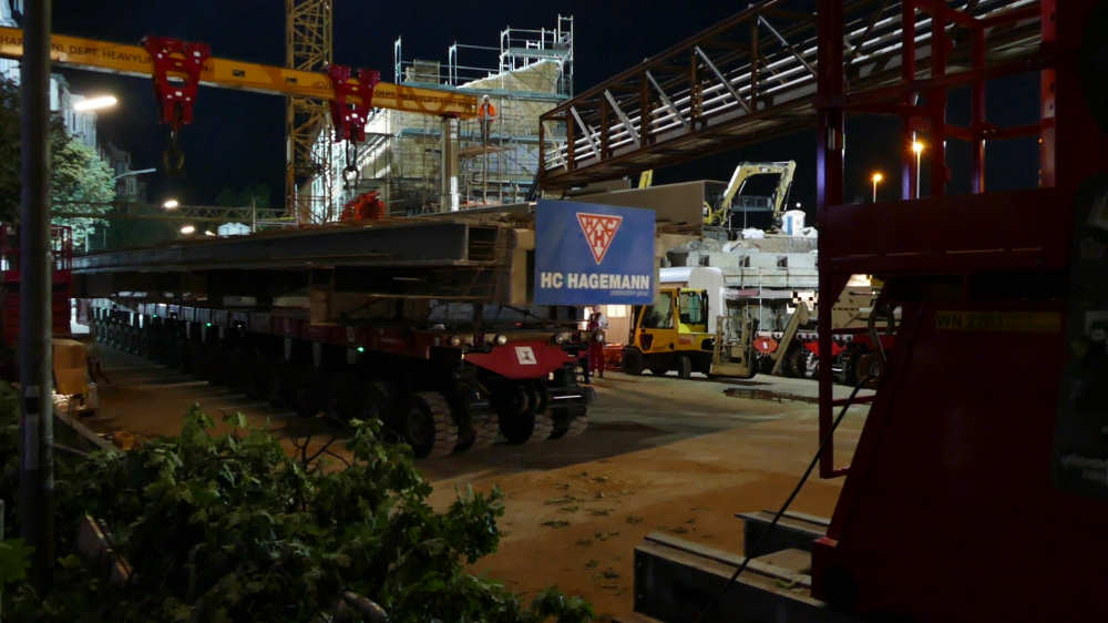 Transport von Betonbrückenteilen mit SPMT
