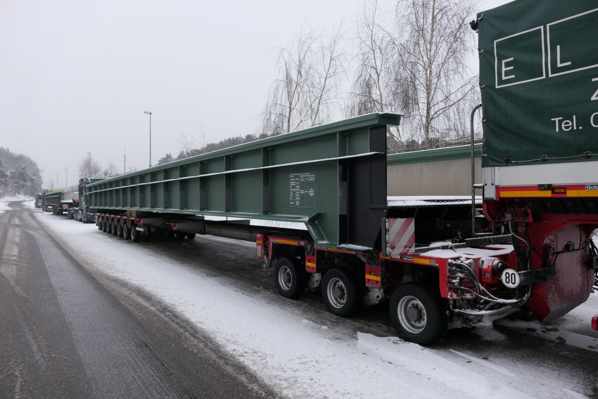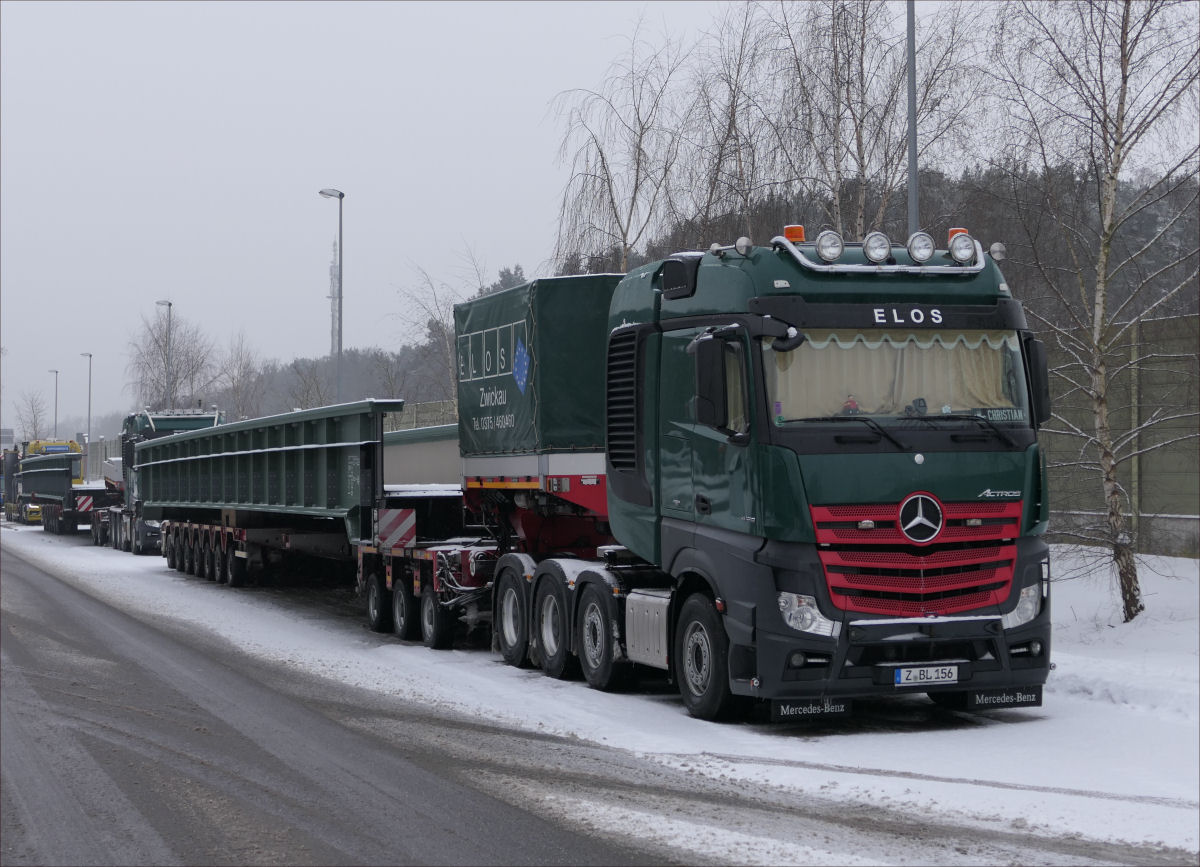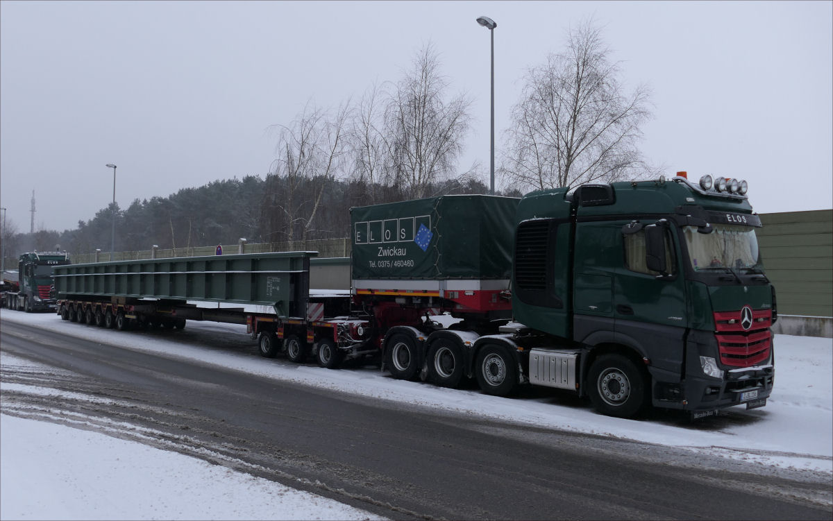2x MB 4158 Actros Titan mit Brücken für die Schanzenstraße in Hamburg