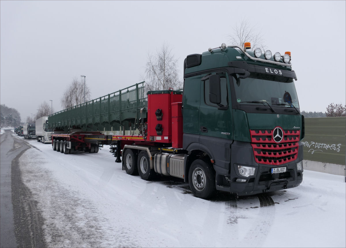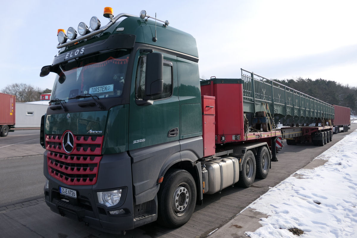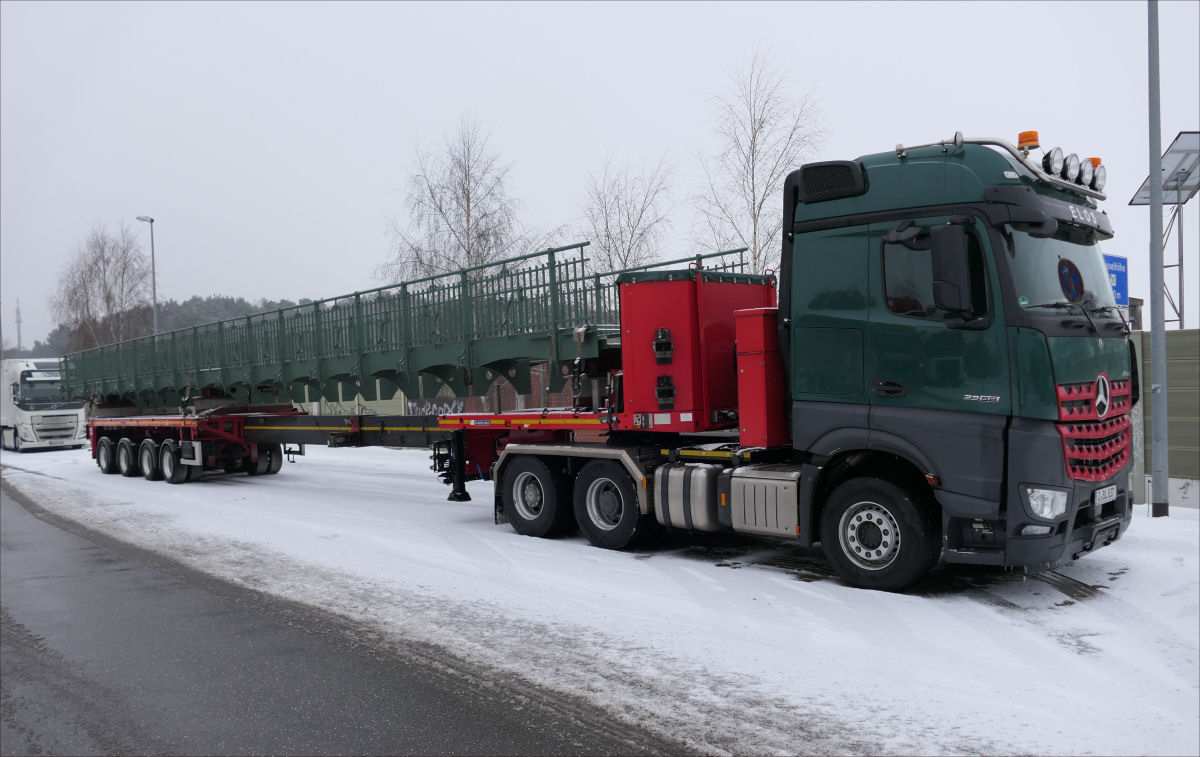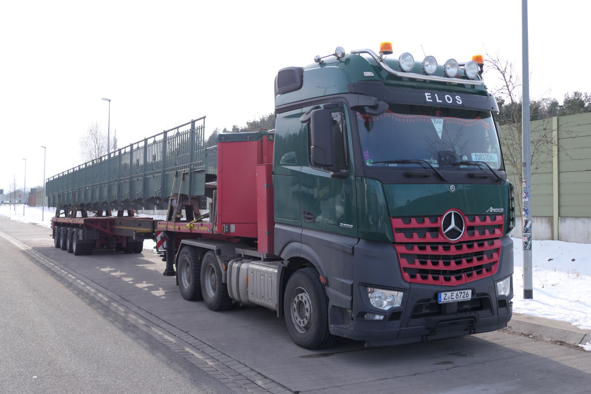 2x MB 4158 Actros Titan mit Brücken für die Schanzenstraße in Hamburg