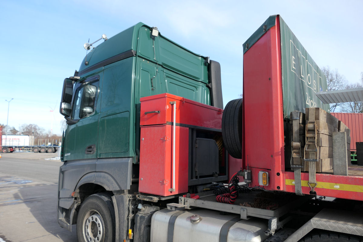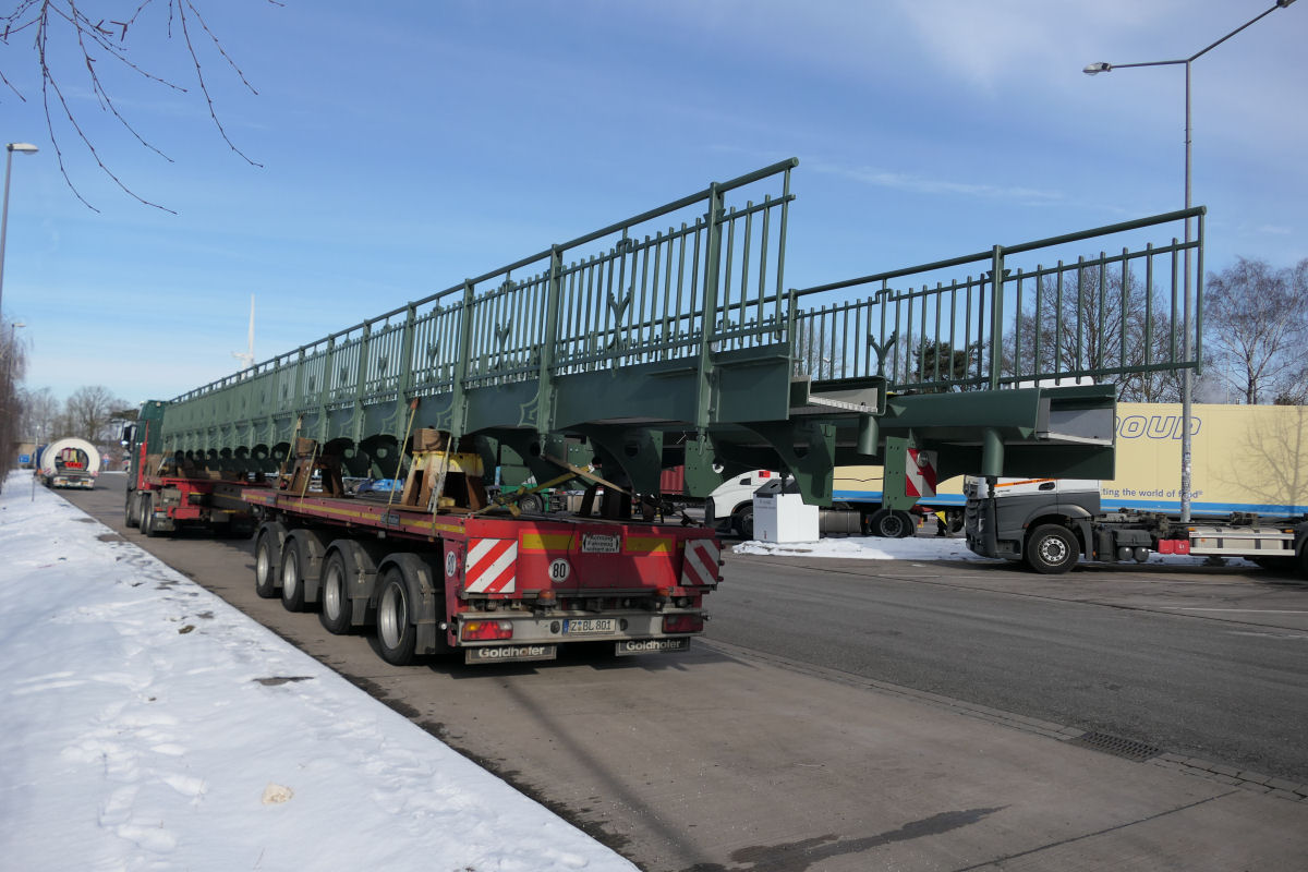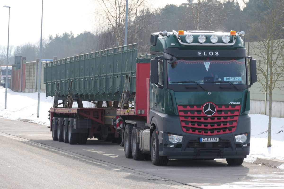 2x MB 4158 Actros Titan mit Brücken für die Schanzenstraße in Hamburg