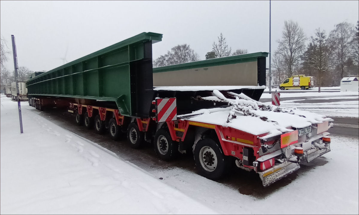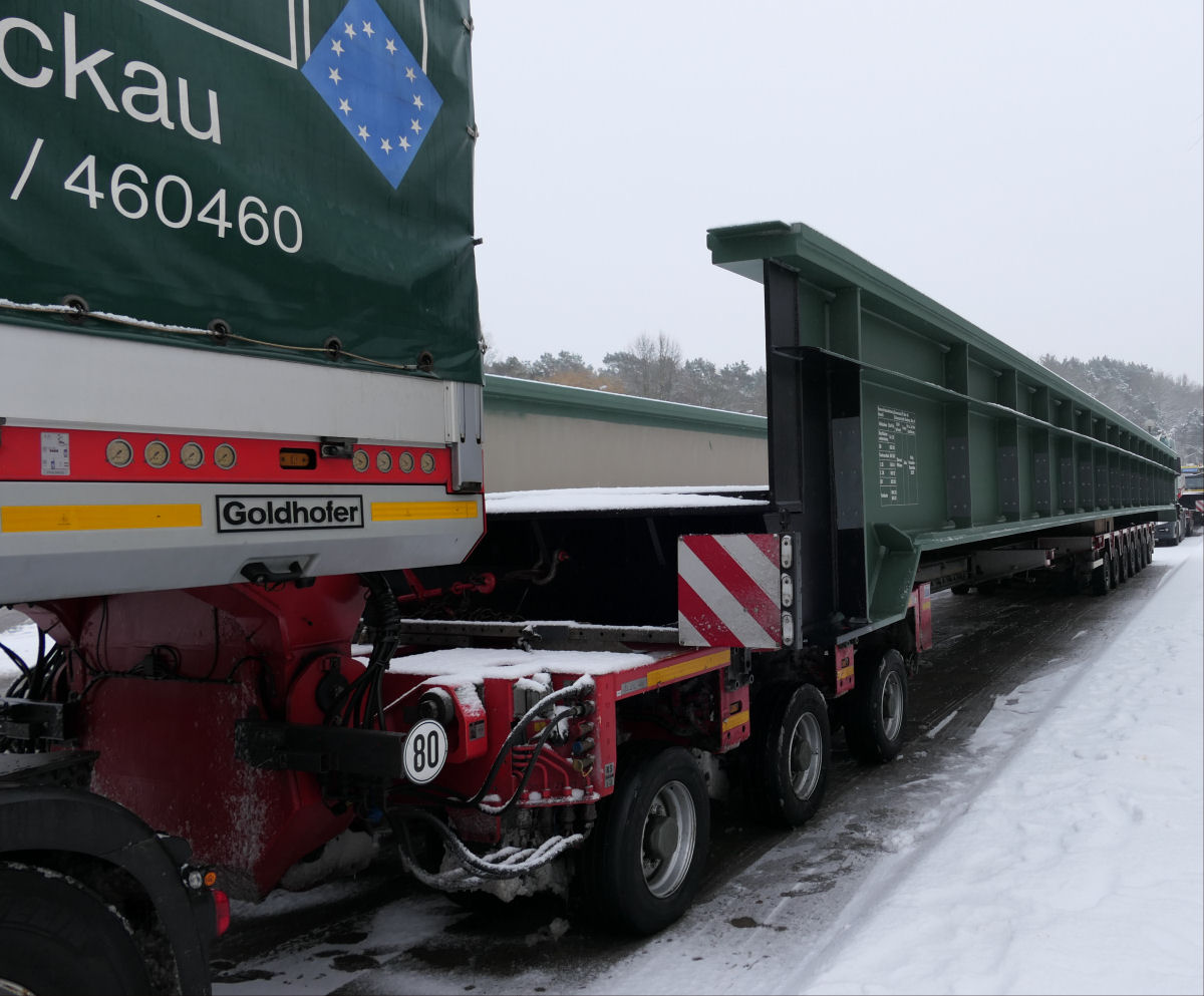 Im Februar 2026 transportierte Elos zwei Brücken für die neue S Bahnüberführung an der Schanzenstraße,
