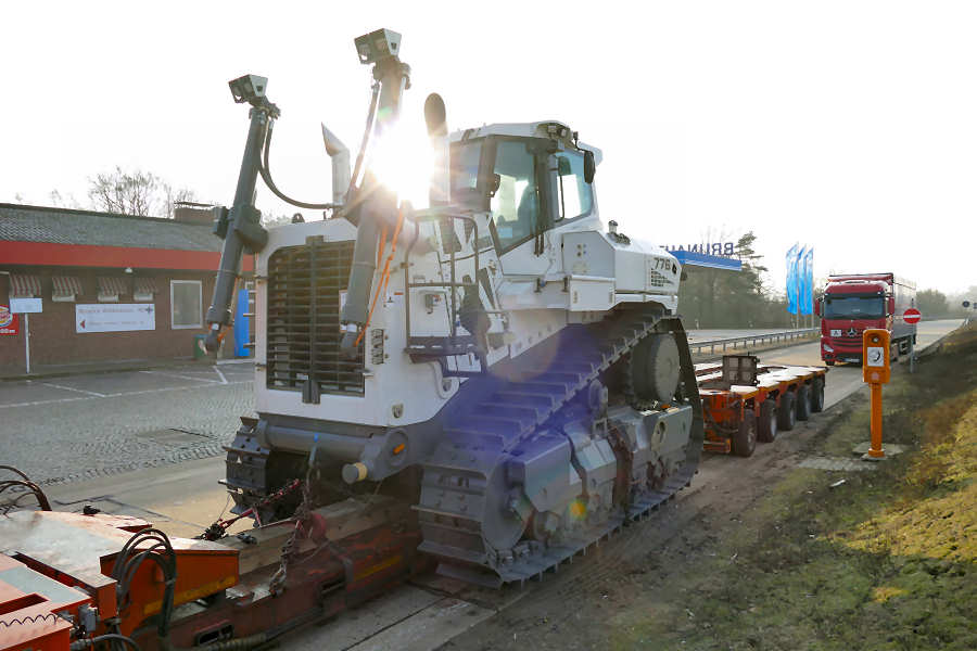 Straßentransport in den Norden zur Verschiffung transportiert. Die PR 776 ist die größte Planierraupe