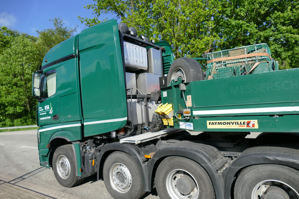 Die Schwerlastkombination bestand aus MB 4163 Actros SLT Titan mit Faymonville