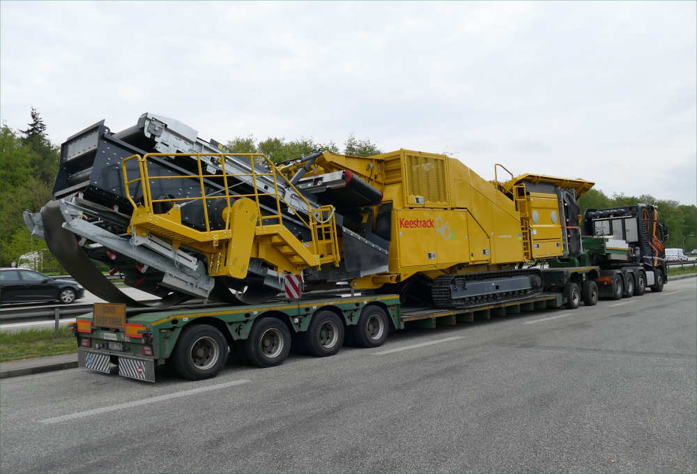 MB 4163 Actros SLT mit Faymonville 2-4 Tieflader und Keestrack R 6 E Raupenbrecher