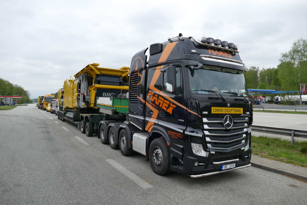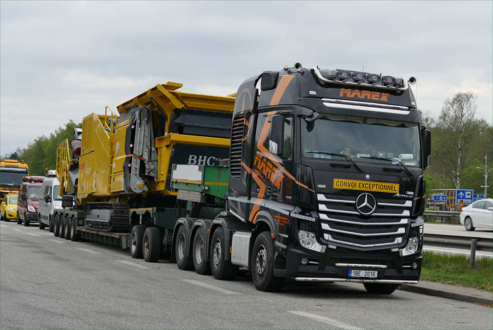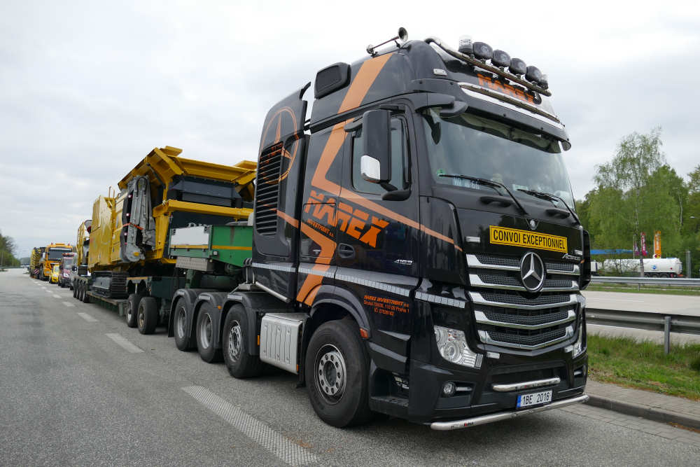 MB 4163 Actros SLT mit Faymonville 2-4 Tieflader und Keestrack R 6 E Raupenbrecher