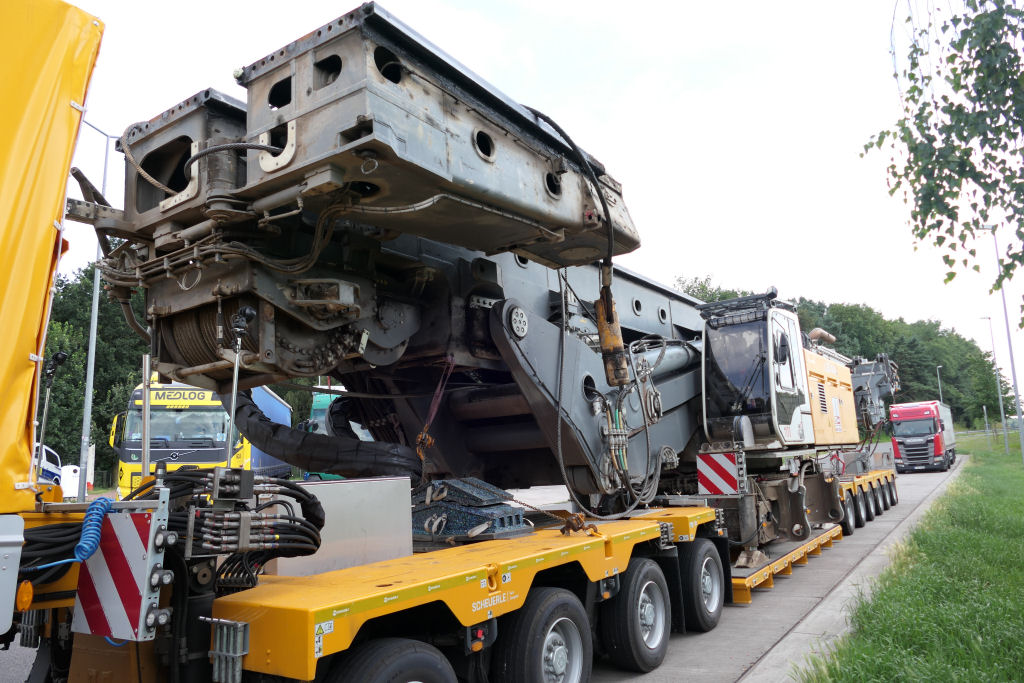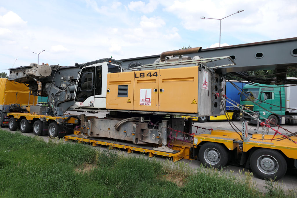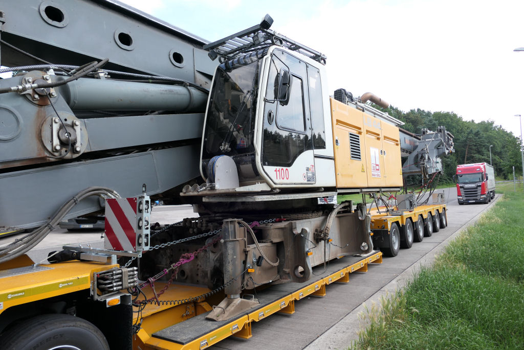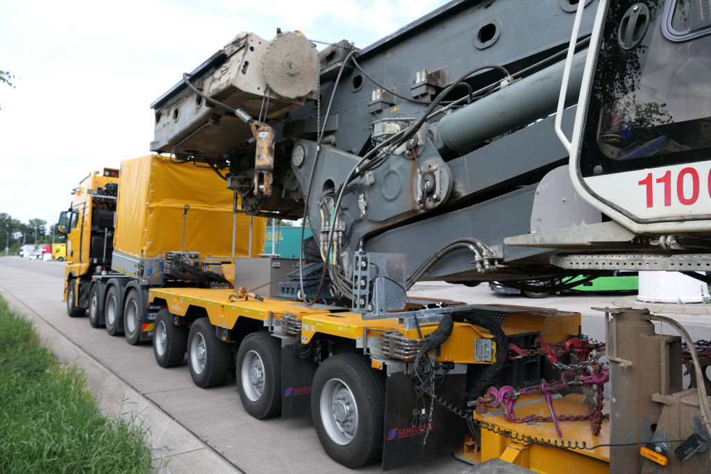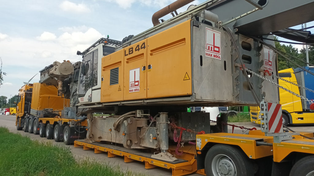 MAN 41.640 TGX mit Liebherr LB 44 Grundgerät Transport auf Scheuerle Euro Compact 4-6 Tieflader