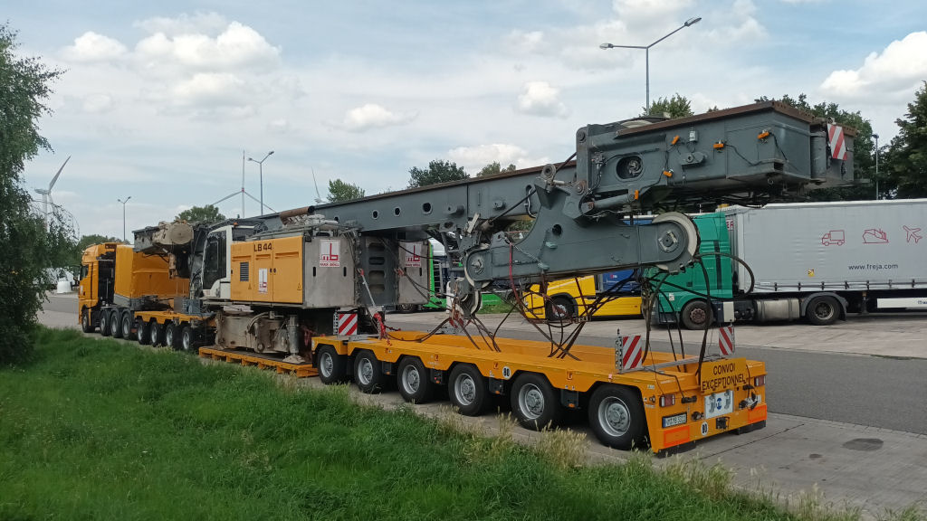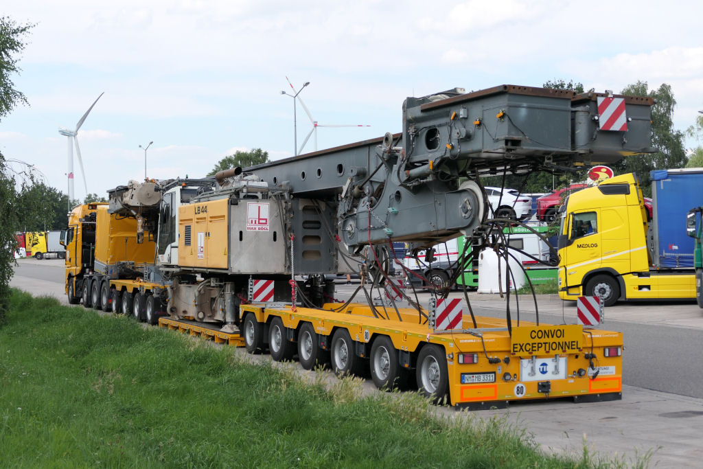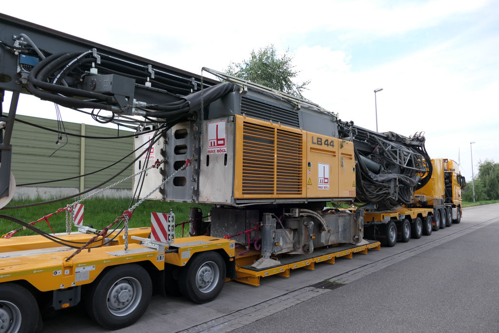 MAN 41.640 TGX mit Liebherr LB 44 Grundgerät Transport auf Scheuerle Euro Compact 4-6 Tieflader