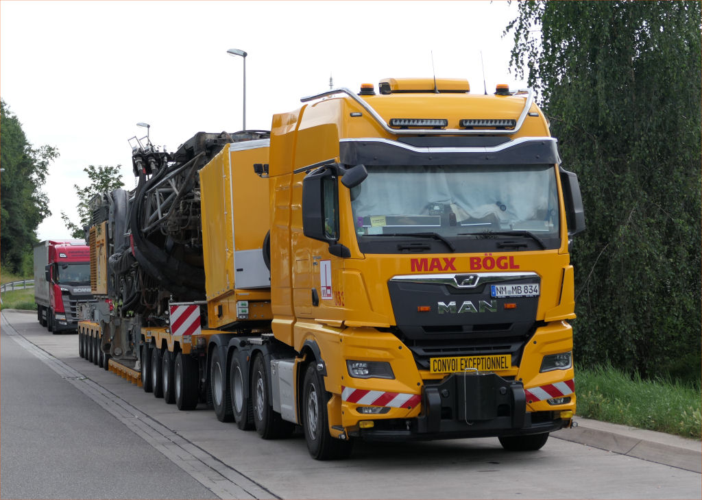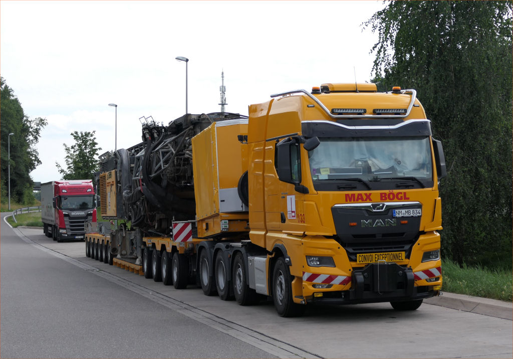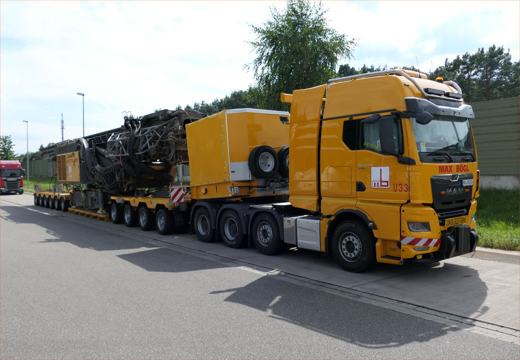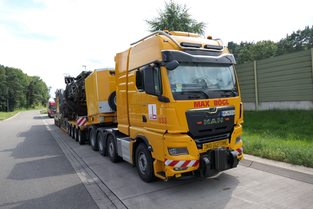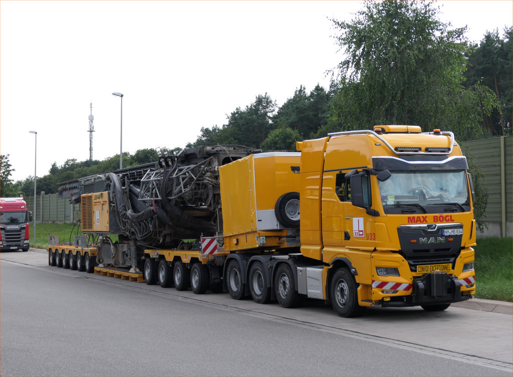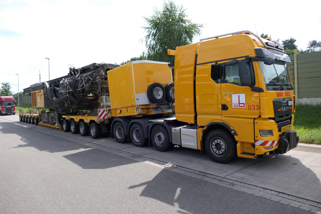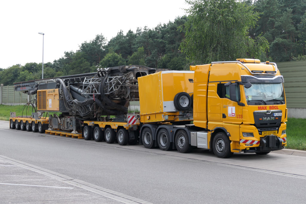 MAN 41.640 TGX mit Liebherr LB 44 Grundgerät Transport auf Scheuerle Euro Compact 4-6 Tieflader