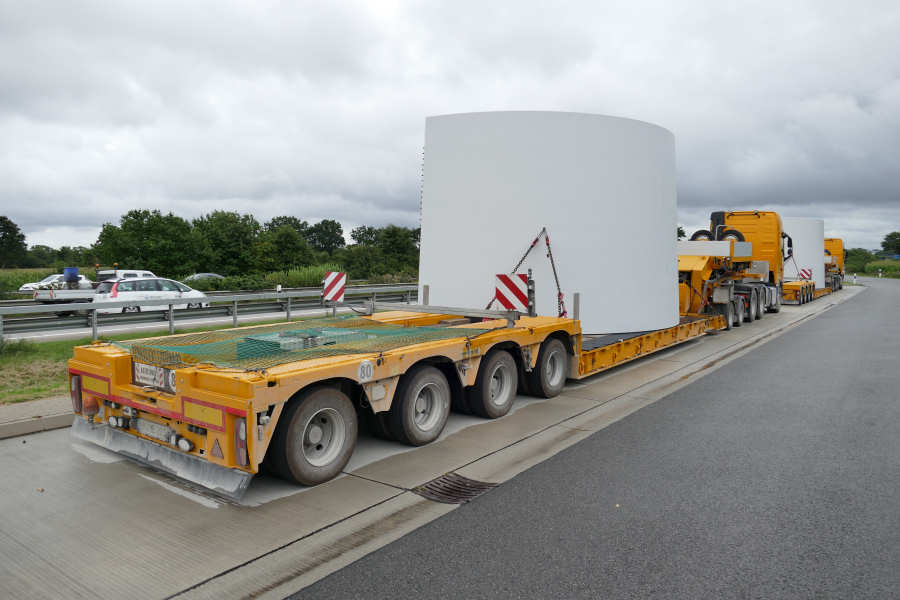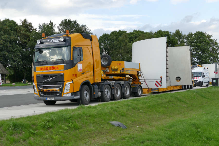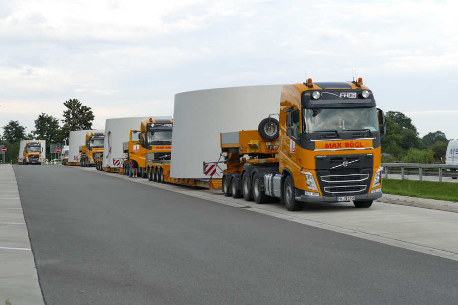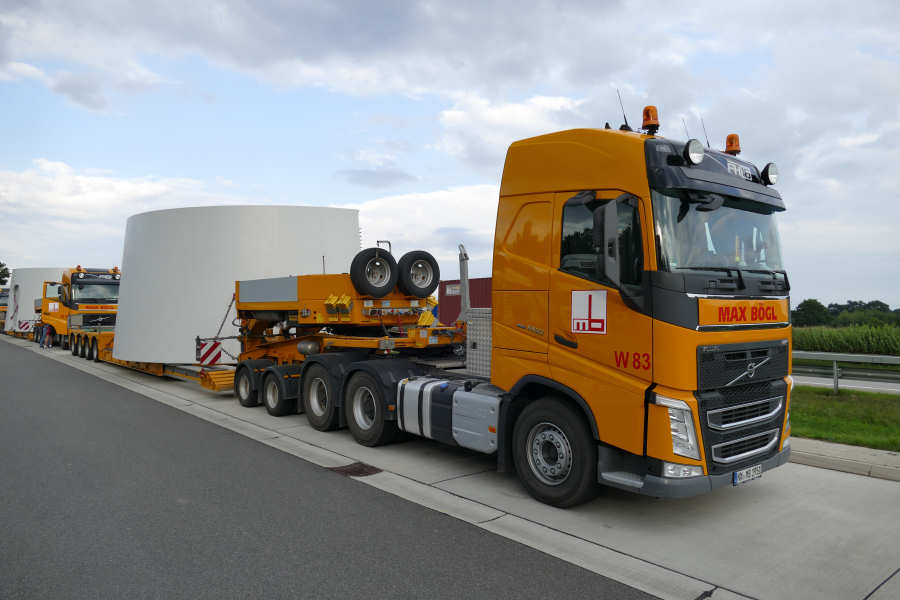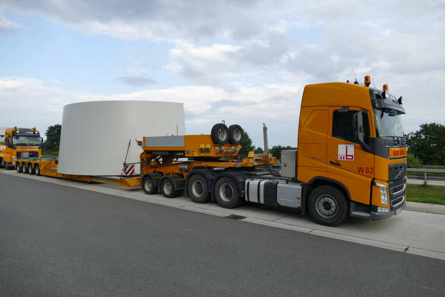 WEA Betonturmteil Transporte mit Volvo FH16 Euro 6 Zugmaschinen