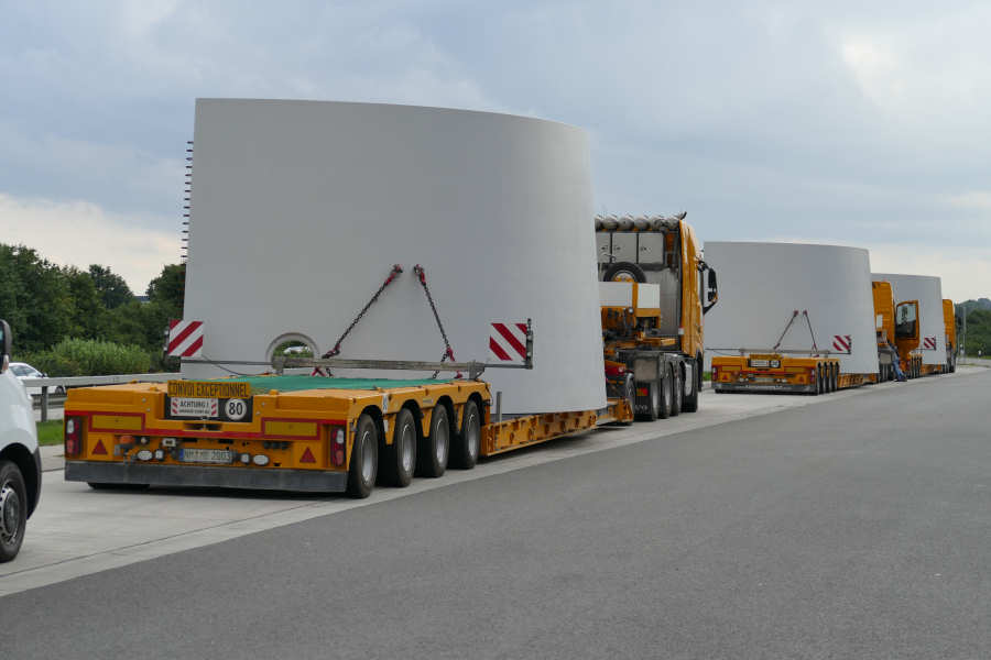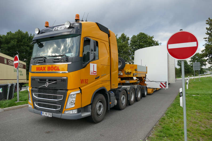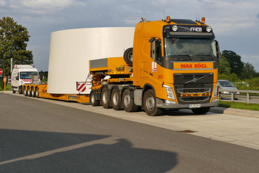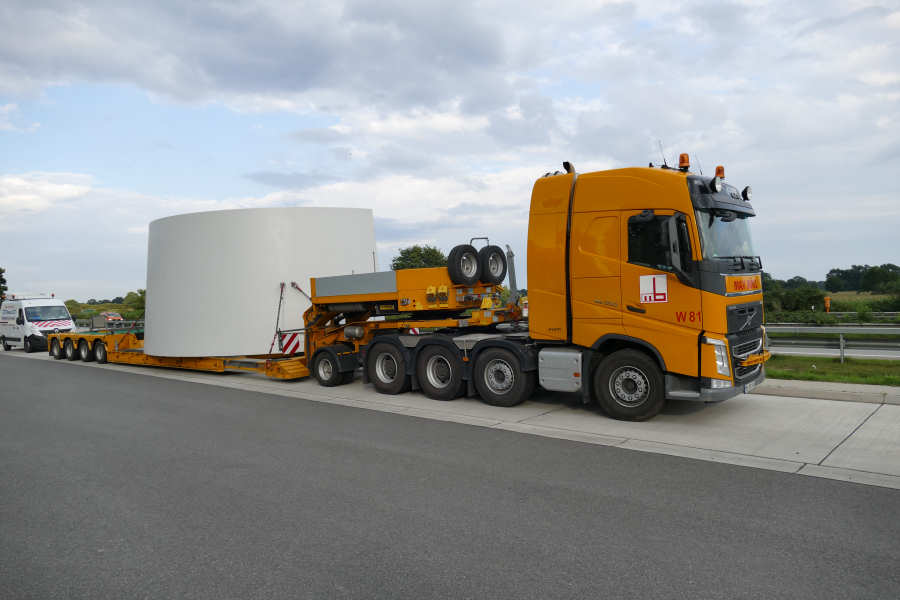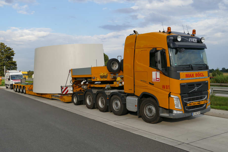 WEA Betonturmteil Transporte mit Volvo FH16 Euro 6 Zugmaschinen