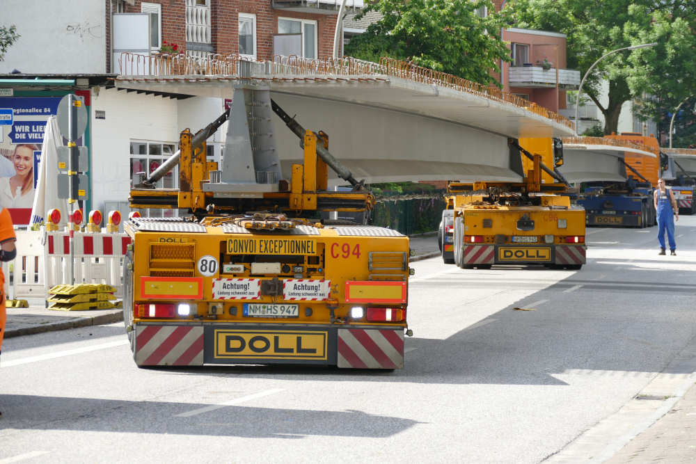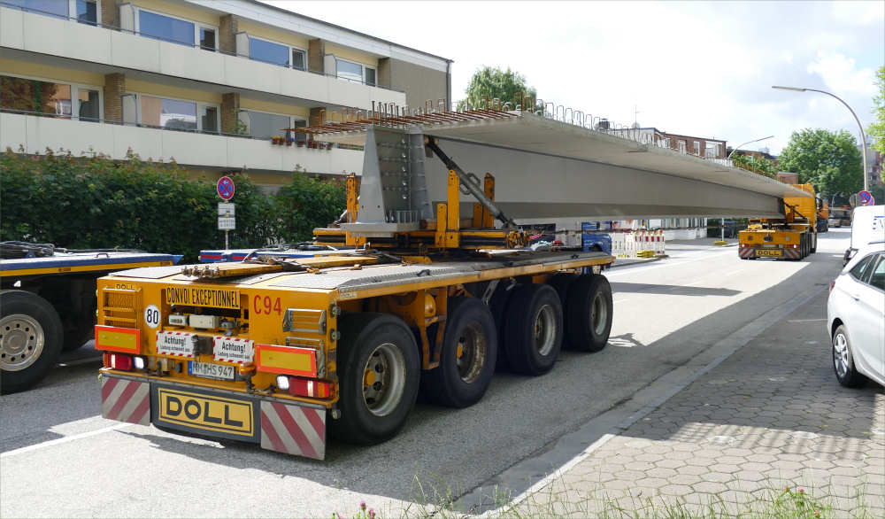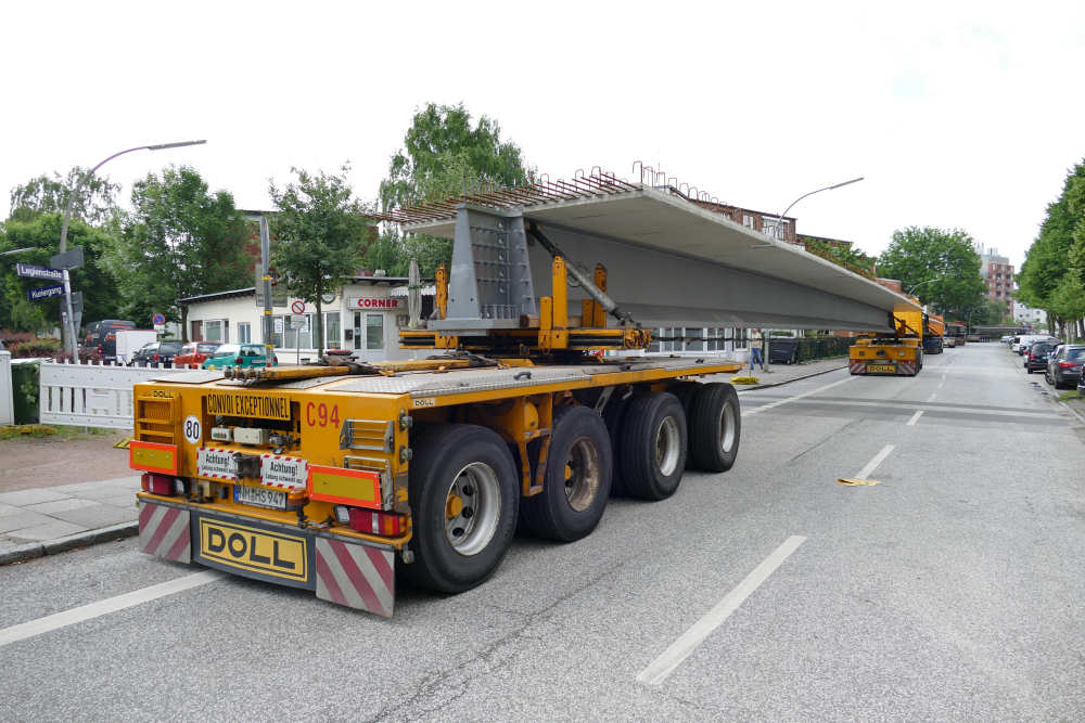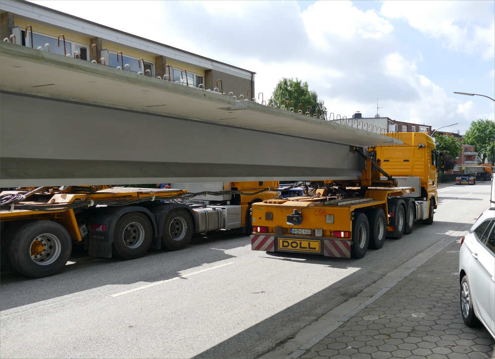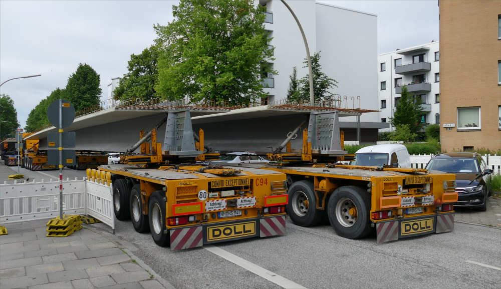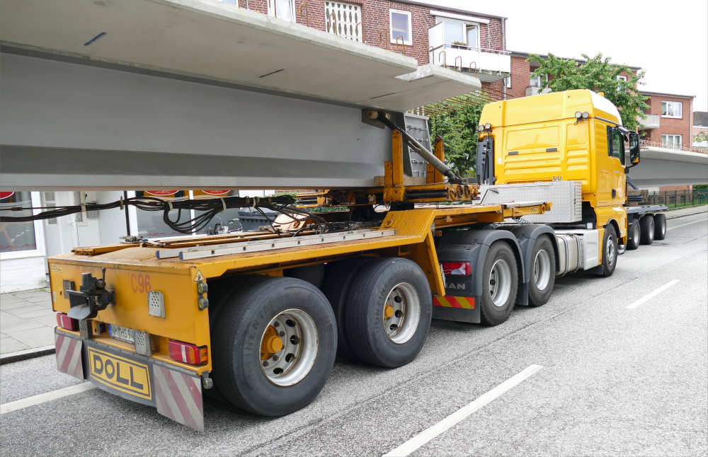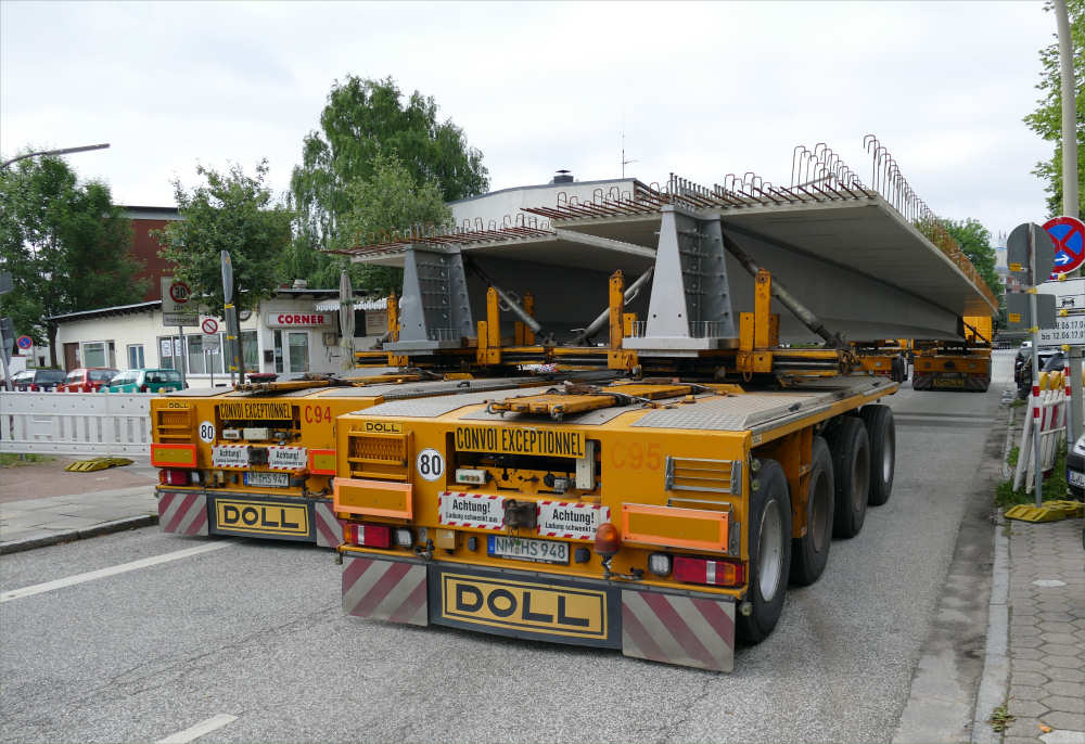 Zweimal MAN 26.4540 TGX Euro 6 6x4 Zugmaschine mit Doll Nachläuferzug und Brückenbinder