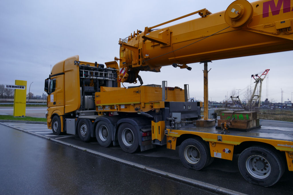 MB 4163 Actros SLT Nr W 38 mit LTR 1220 Transport bei Liebherr MCCTec Hamburg