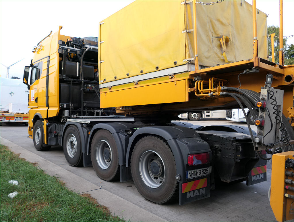 Die Kombination bestand aus MAN 41.640 TGX mit Scheuerle Intercombi 6 achs Sattelroller.
