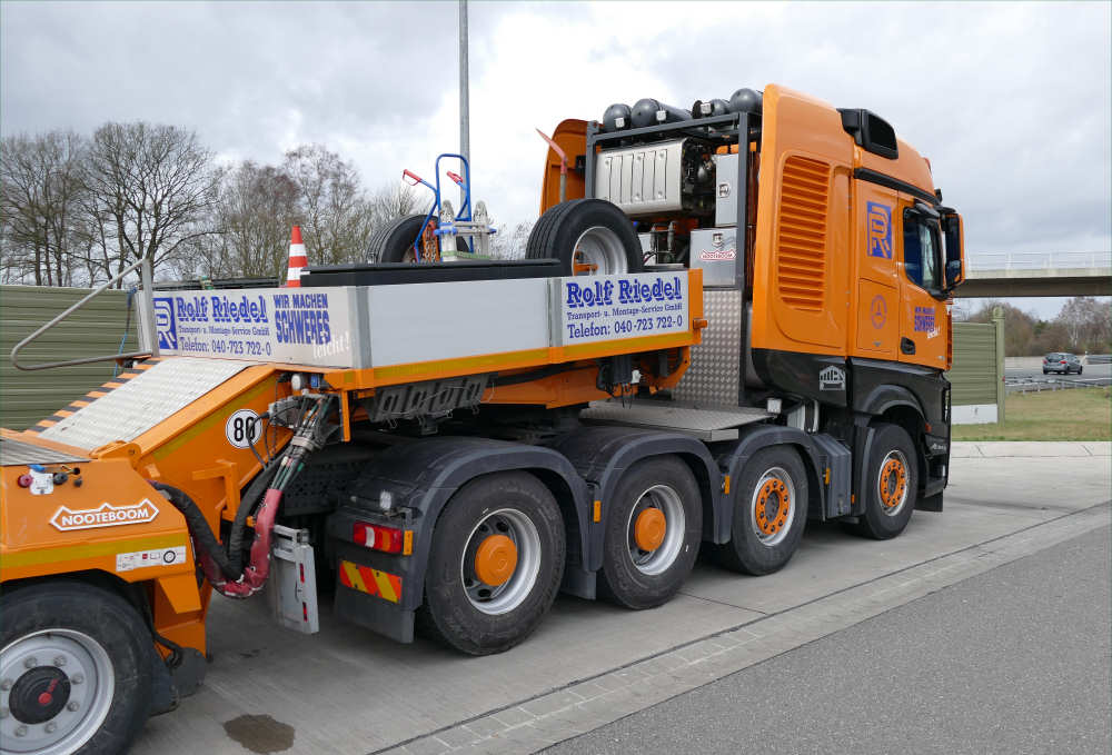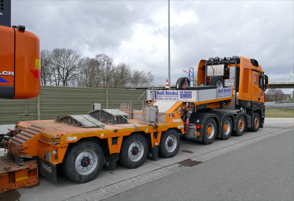 MB 4163 SLT Titan mit Nooteboom 3/5 Euro PX Transport Hitachi Zaxis 490 LCH