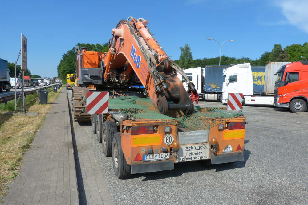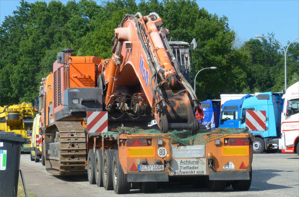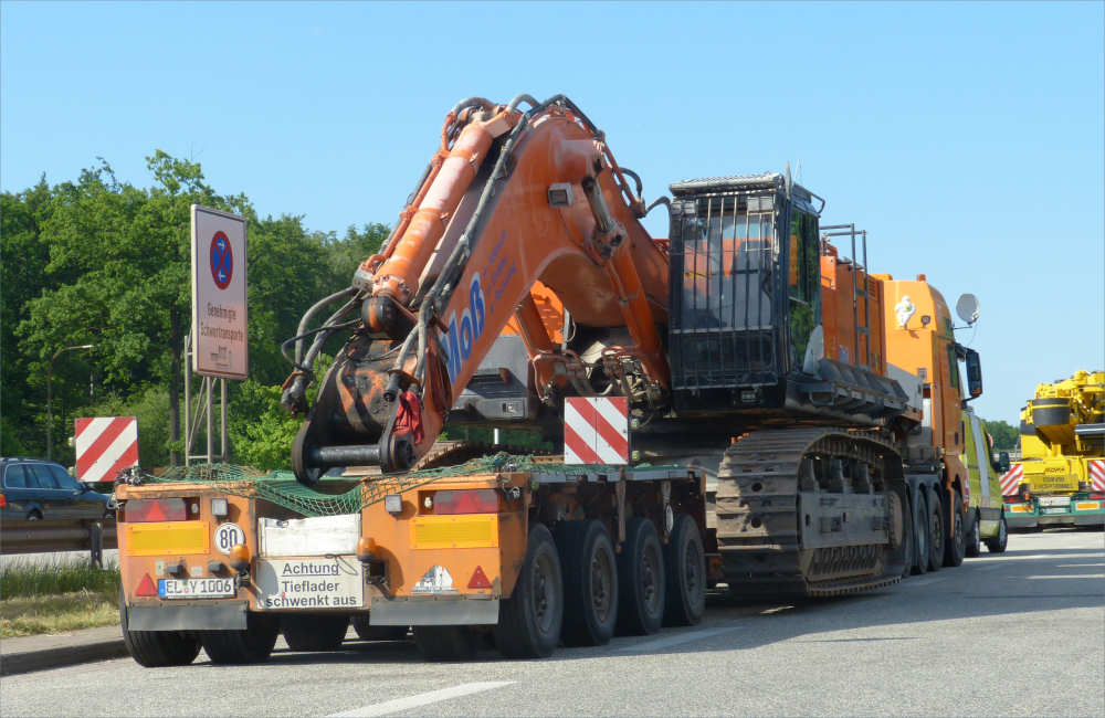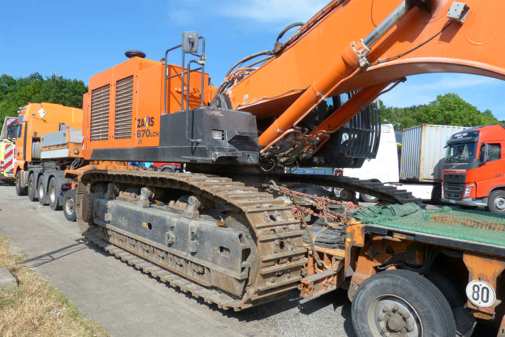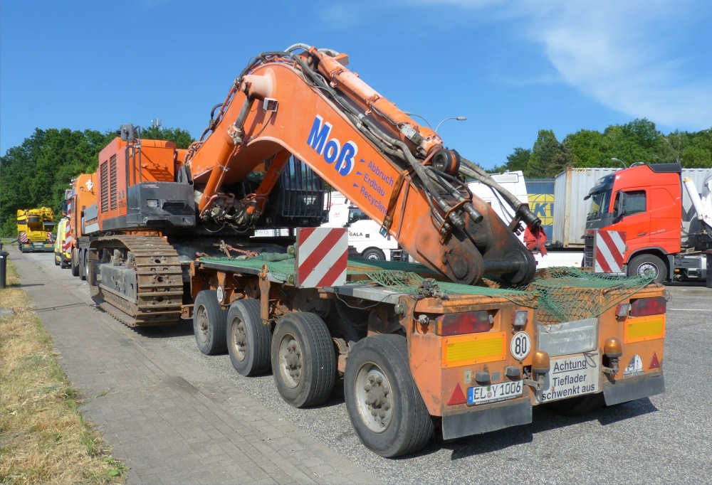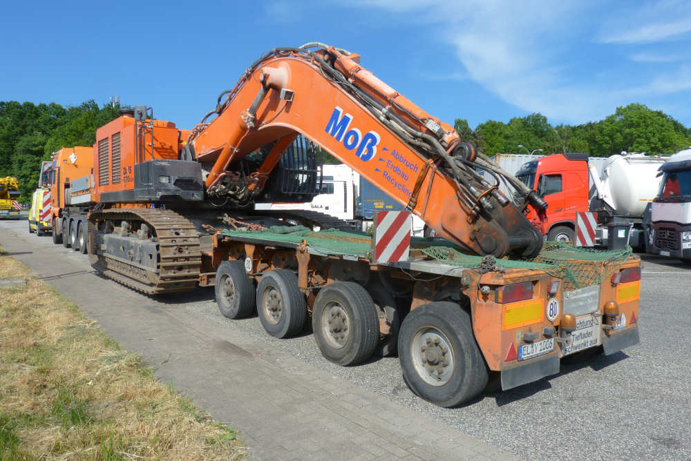 MAN 33.540 TGX mit Goldhofer 2/4 Tieflader und Hitachi Zaxis 670 Bagger