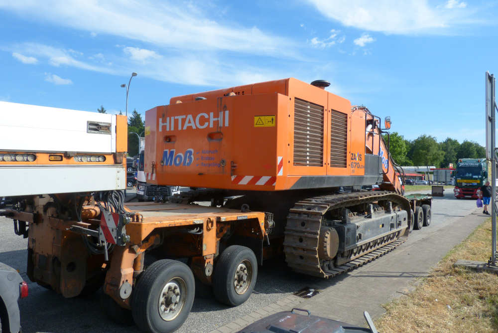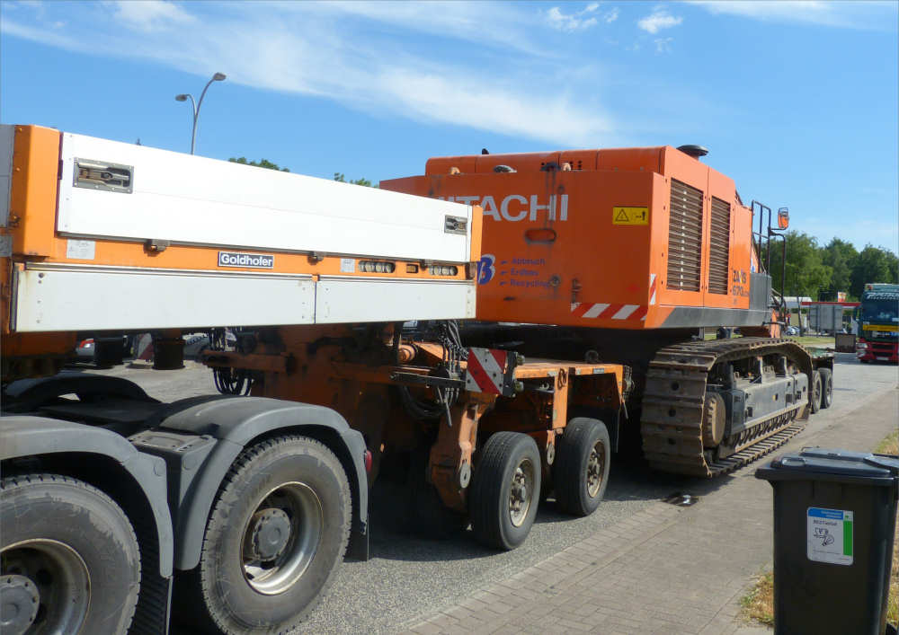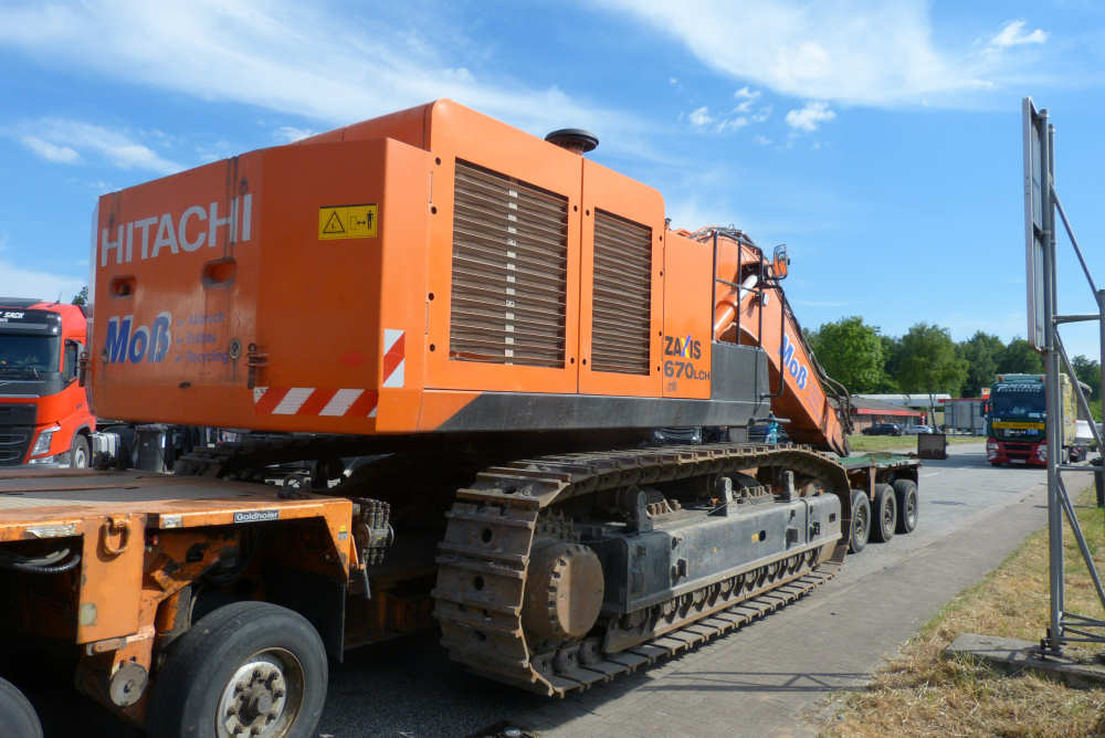 Transportiert wurde ein Hitachi Zaxis 670 Hydraulikbagger, auf dem Weg zu einem Brückenabbruch an der A 7.