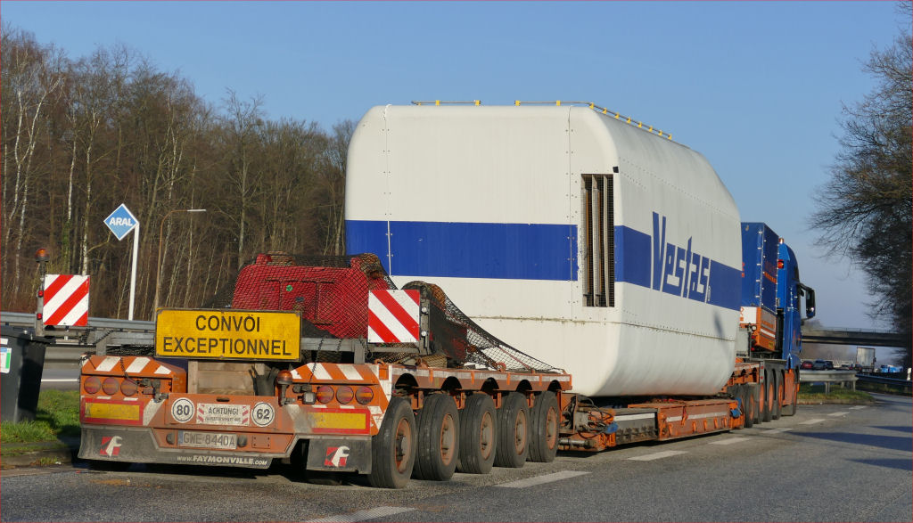 MAN 41.540 8x4 mit Faymonville 3/5 Variomax Tiefbettkombination Vestas Maschinenhaus