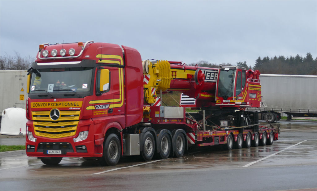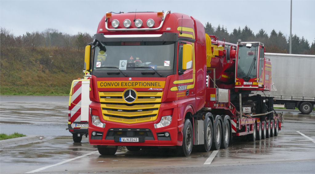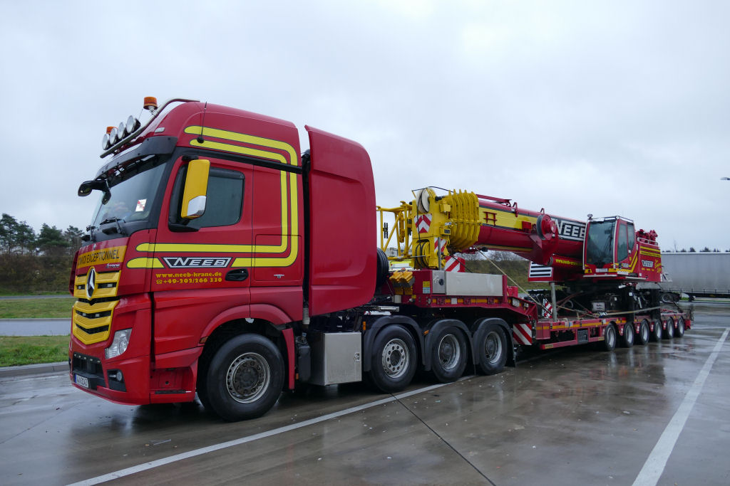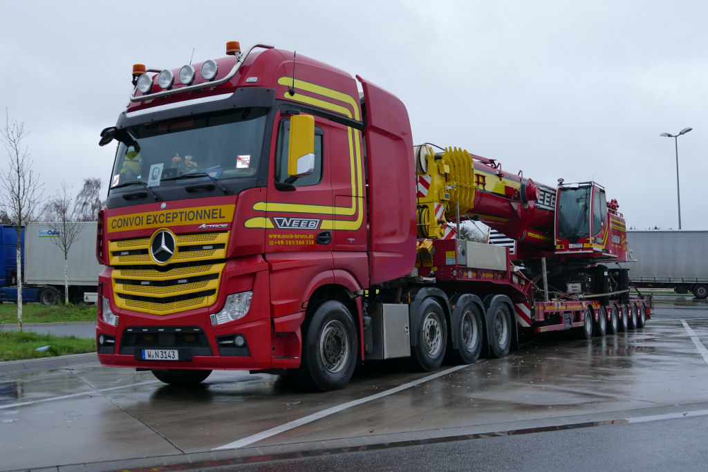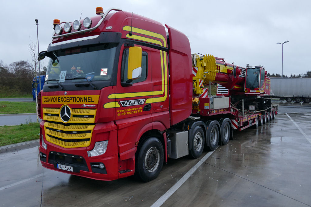 Kurz vor Weihnachten 2020 konnte ich diesen Transport von Neeb Krane aus Wuppertal auf dem Rasthof