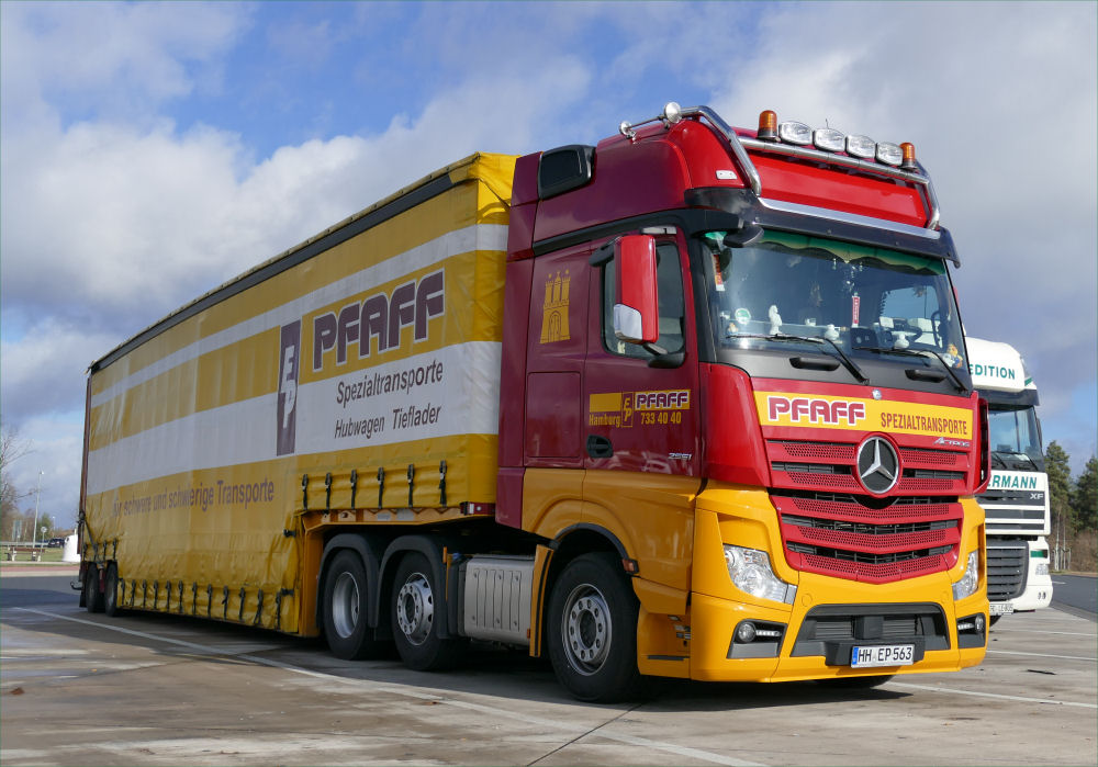 MB 2551 Actros MP 4 mit Meusburger Planentieflader