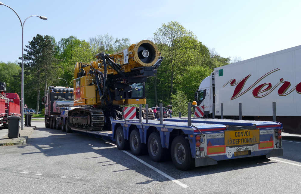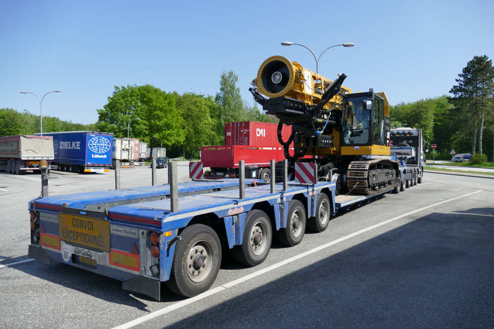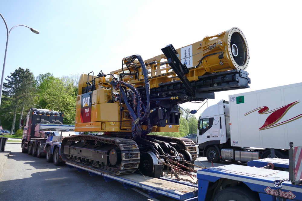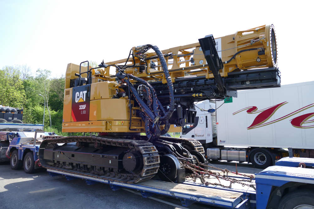 Volvo FH 16 750 8x4 mit CAT 335 F Zweiwege Raupenbagger und Bohr- und Rammeinrichtung