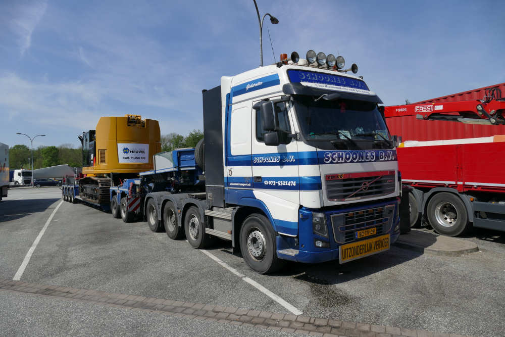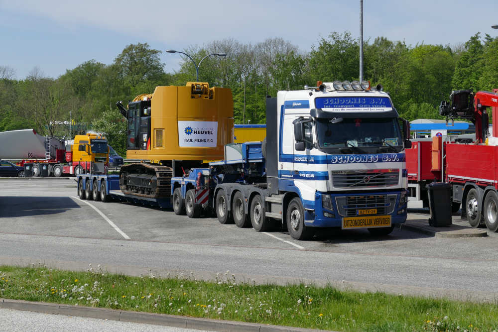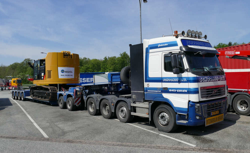 Volvo FH 16 750 8x4 mit CAT 335 F Zweiwege Raupenbagger und Bohr- und Rammeinrichtung