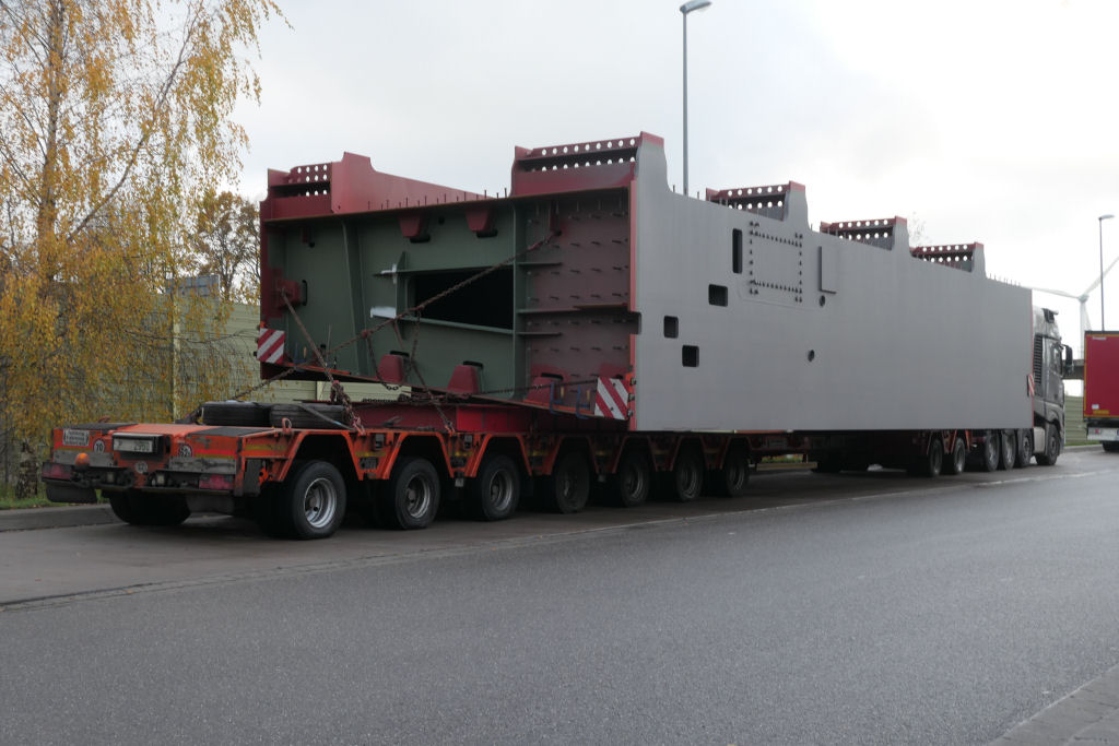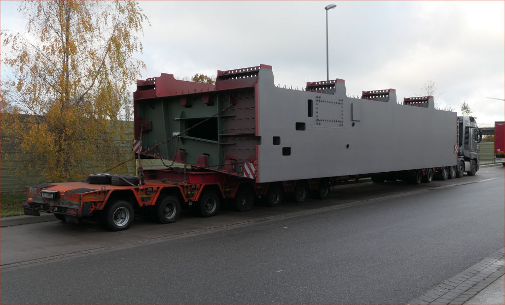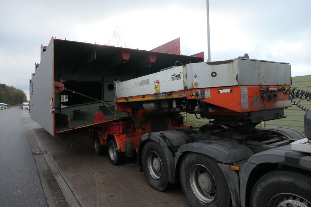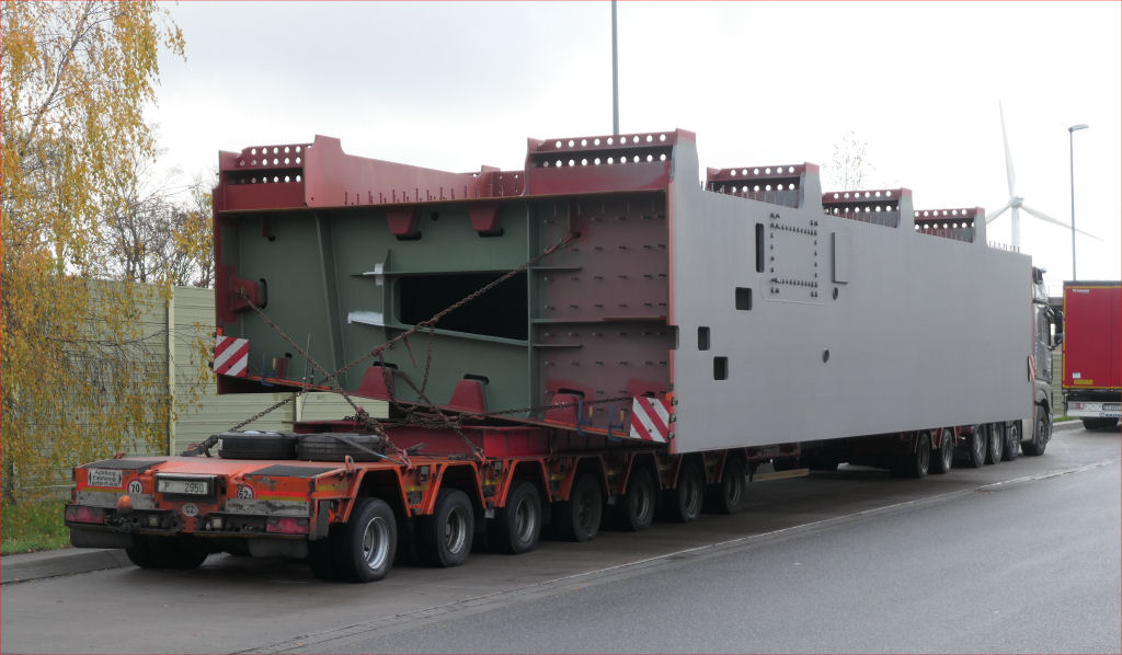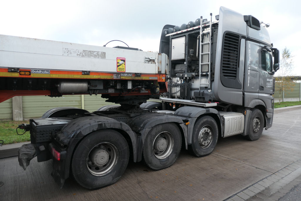 MB Actros 4163 SLT mit Goldhofer 2-7 MPA Tieflader und Brückenteil für die Rader Hochbrücke