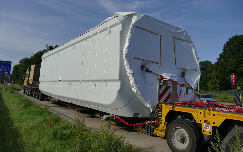 Volvo FH 16 750 8x4 mit Scheuerle Intercombi 3-5 Tieflader und Nordex Maschinenhaus