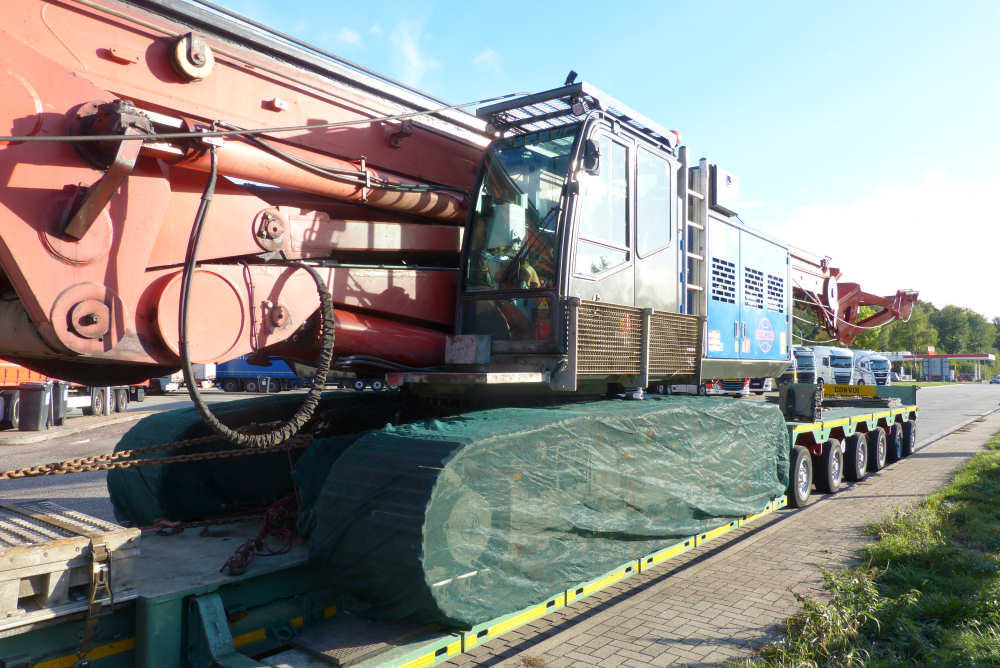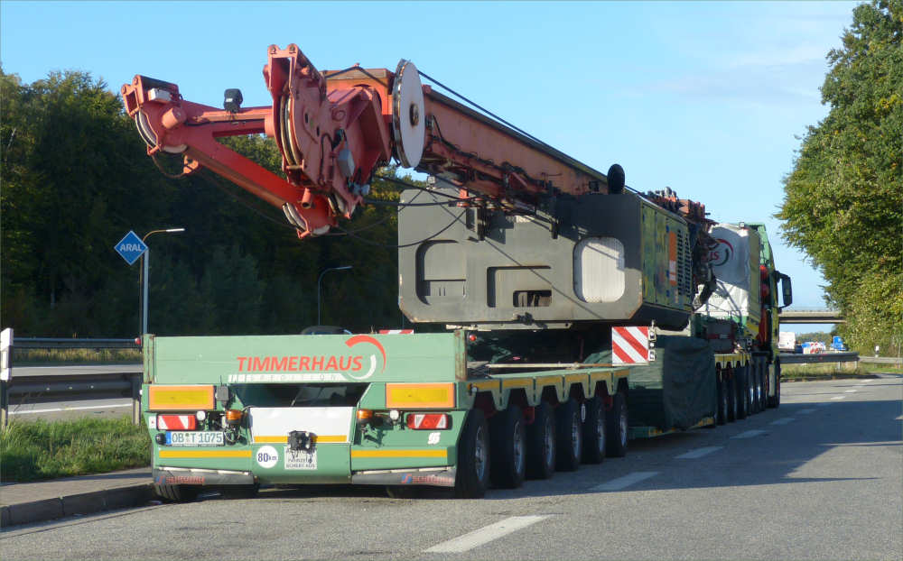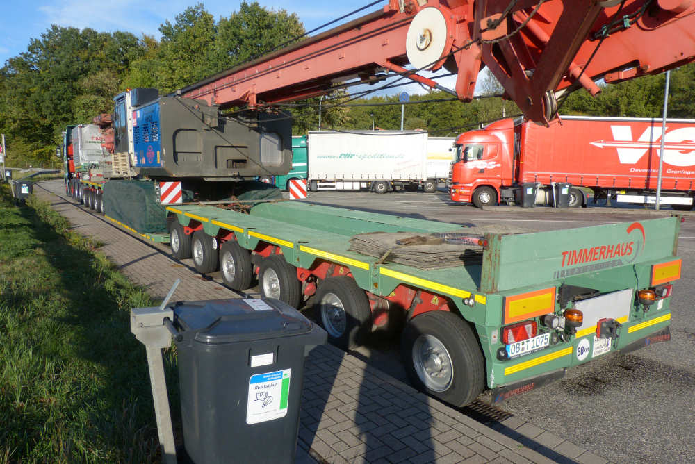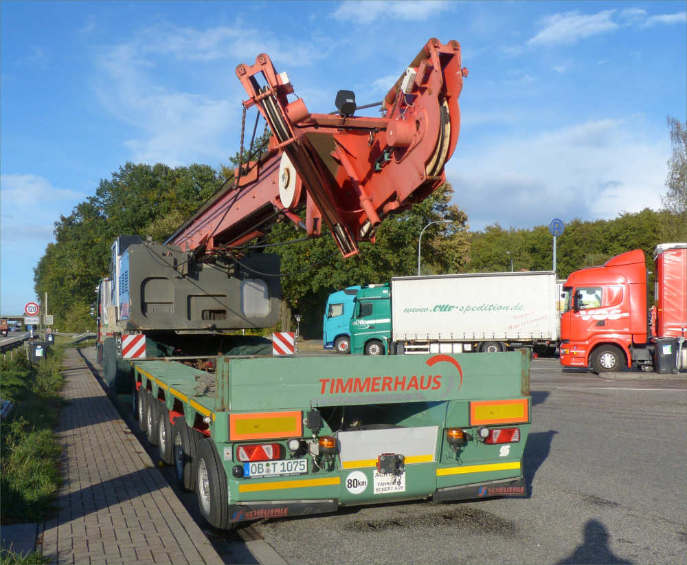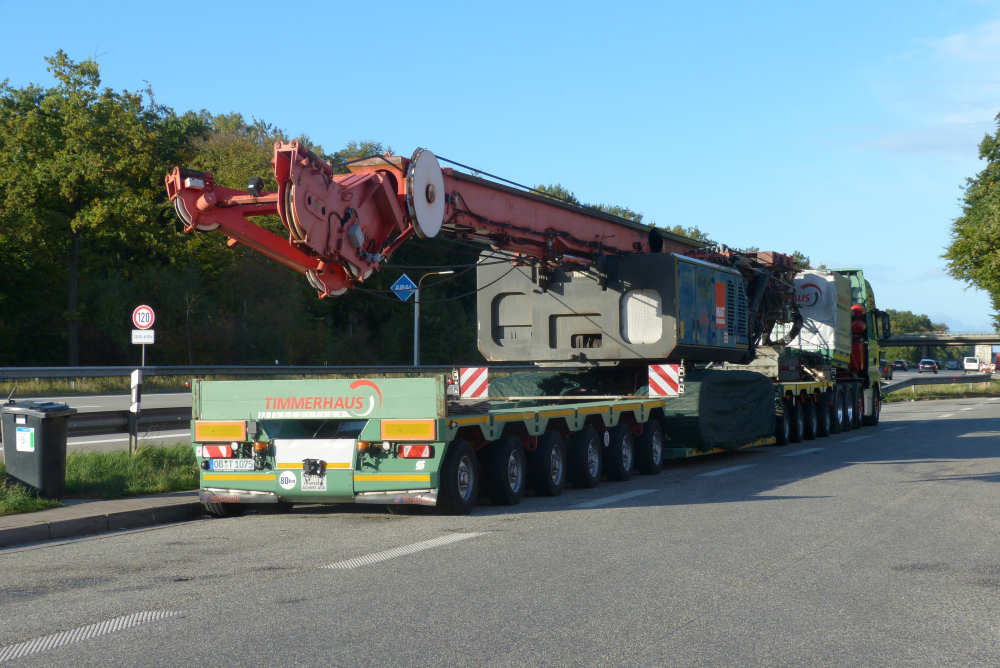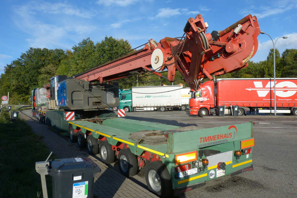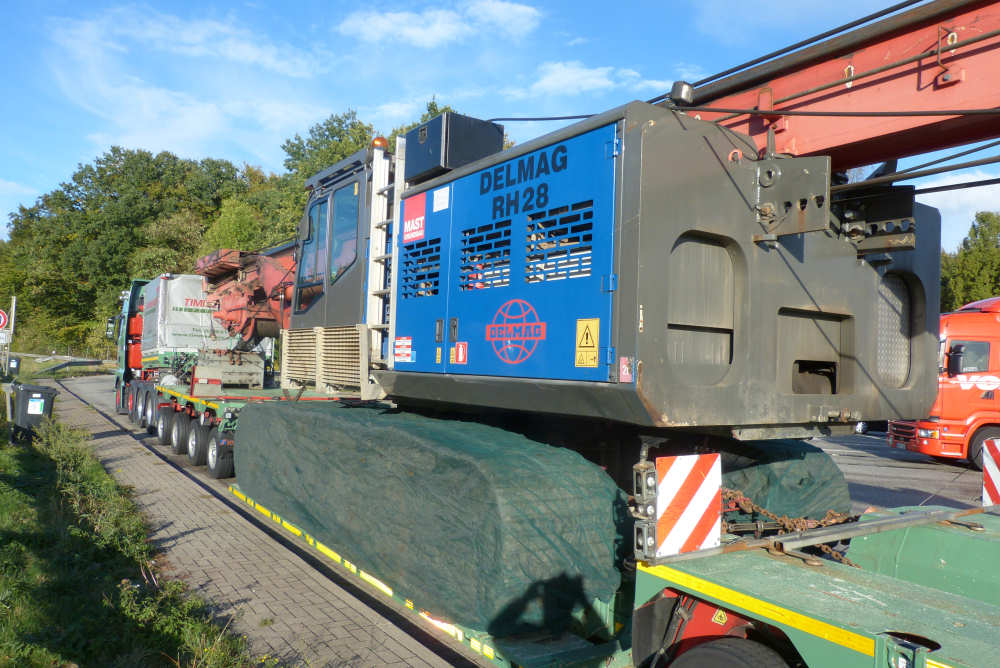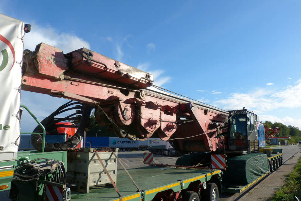 MAN 41.640 TGX mit Scheuerle Nicolas 4-6 Eurocompact Tieflader und Delmag RH 28 von Mastbau