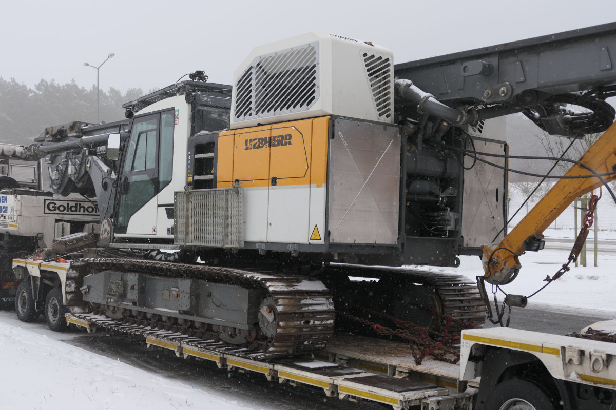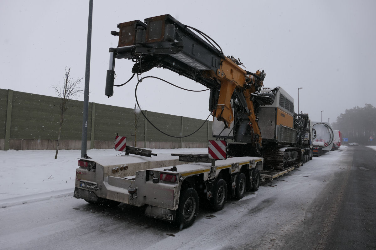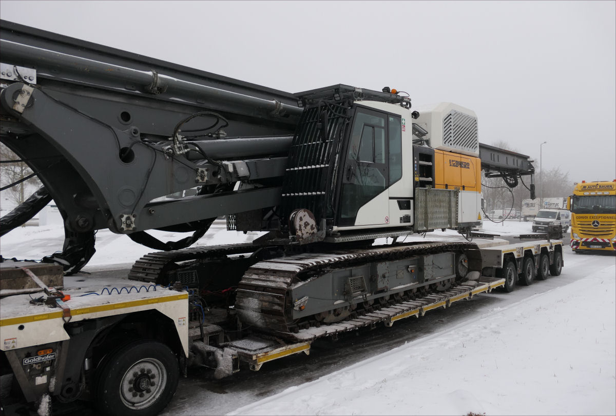 Volvo FH 05 mit Goldhofer 2/4 Tieflader und Liebherr LRB 23